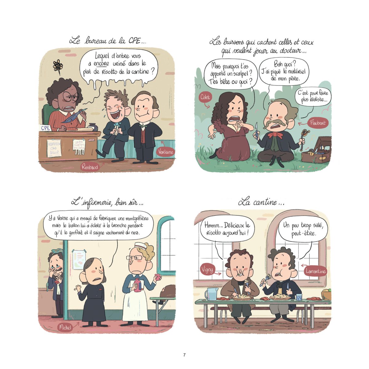 À quoi aurait pu ressembler la cour de récré de Victor Hugo, Louise Michel, Edmond Rostand, Jules Verne, Honoré de Balzac et Georges Sand s’ils avaient partagé la même école ? C’est ce qu’imaginent Popésie et Maïté Robert qui réunissent ces grands noms de la littérature du XIXe siècle dans une seule et même classe. Facétieux, goguenards, curieux, vifs et impertinents, la joyeuse bande de la classe XIX fait son retour dans ce nouveau tome d’ "À l’école des Lettres".
