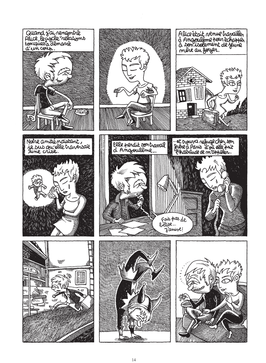 Au tournant du millénaire. Il est animateur pour le dessin animé Kirikou et la sorcière. Au sein d’un groupe d’amis, il recherche une alternative au contexte morose de ces années 90. Elle débarque à Angoulême, en quête d’un destin artistique. Ils se rencontrent, elle l’attire, elle le repousse, il la protège. Et progressivement, une relation amoureuse s’instaure, intense et exclusive, faite d’attraction-répulsion et de dépendance mutuelle.
