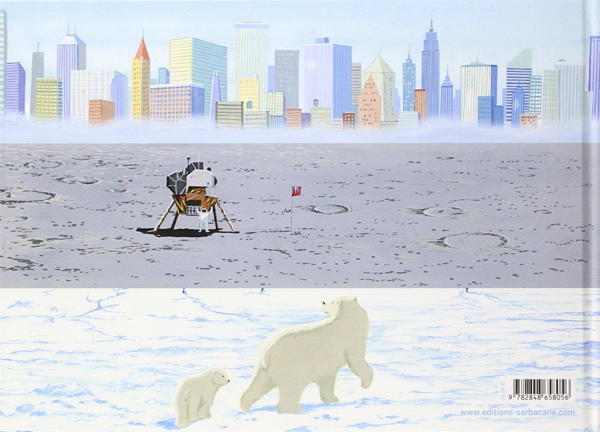 Réponse : cet album de Max Ducos, qui nous propose dix vues découpées en trois bandes horizontales pour un méli-mélo aux allures de cadavre exquis très jouissif ! En tout, 1000 combinaisons possibles, avec une phrase de texte en vis-à-vis de chaque bande, pour jouer aussi à mêler les descriptions, et donc l’histoire que le lecteur se raconte…