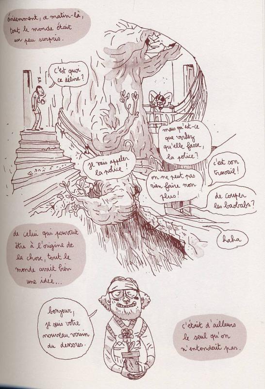Une histoire loufoque et attachante où on découvre une concierge acariâtre qui rêve de croisière, un zèbre-trophée de chasse qui s’ennuie et un physicien en herbe, le tout servi par le dessin virtuose et léger de Benjamin, un auteur surdoué à suivre absolument. Ecrit et dessiné d’une traite, au fil du stylo, pour le défunt webzine desseins du mois de juillet 2006, 12 rue des ablettes est une histoire pas du tout autobiographique.