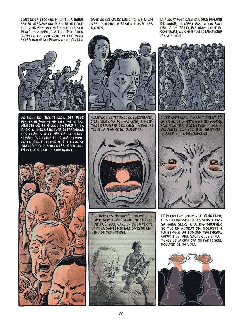 1984, le chef-d’œuvre de George Orwell, fait partie des plus grands textes du xxème siècle. Les lecteurs de tous âges connaissent Big Brother et Winston Smith, car plus qu’un roman politique et dystopique, 1984 a nourri notre imaginaire sans jamais perdre de son actualité. L’atmosphère envoûtante et le dessin aux teintes fantastiques de l’illustrateur brésilien Fido Nesti, alliés à la modernité de la traduction de Josée Kamoun, nous offrent aujourd’hui une somptueuse édition de 1984, la première version graphique du texte mythique d’Orwell.