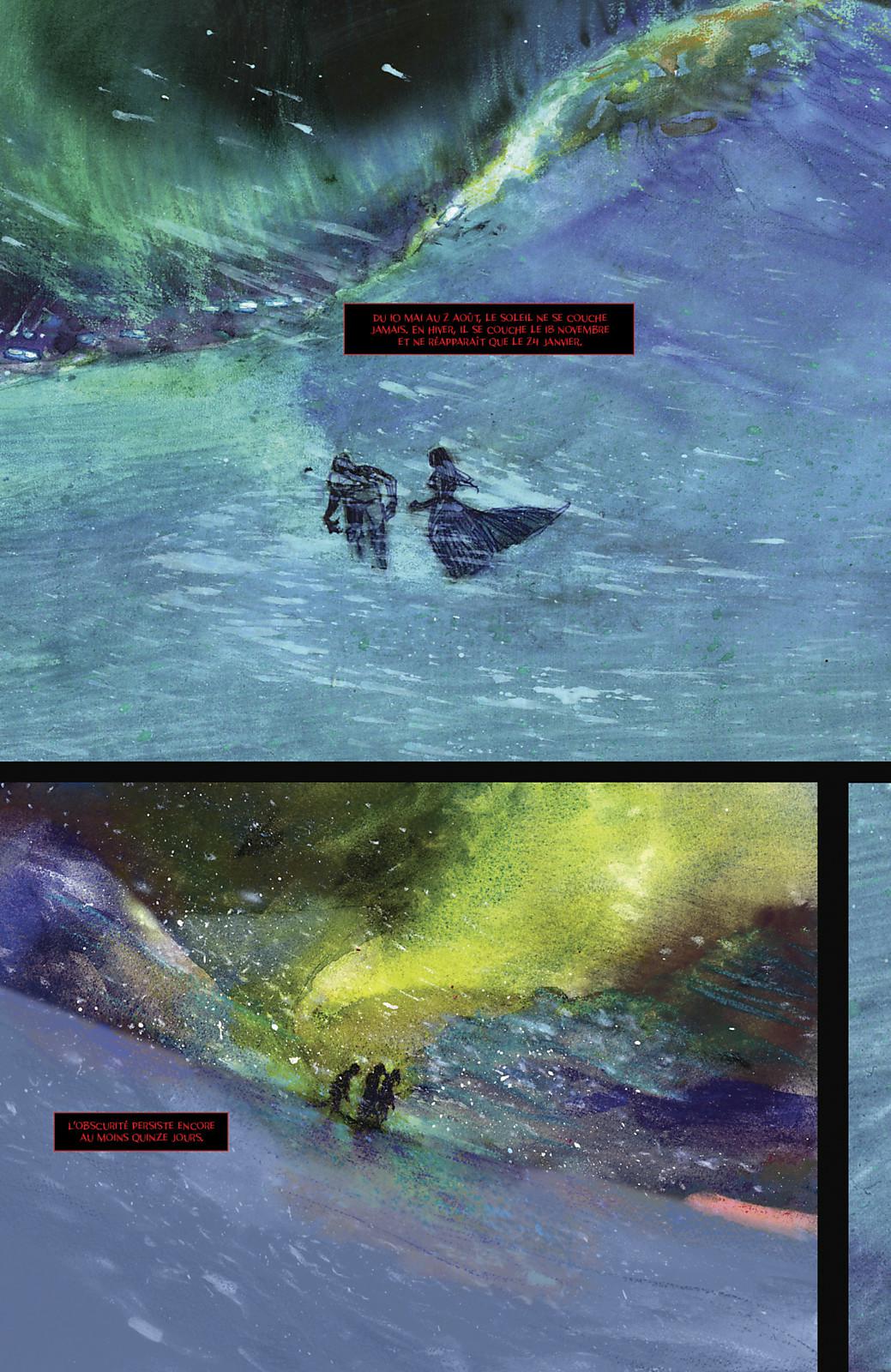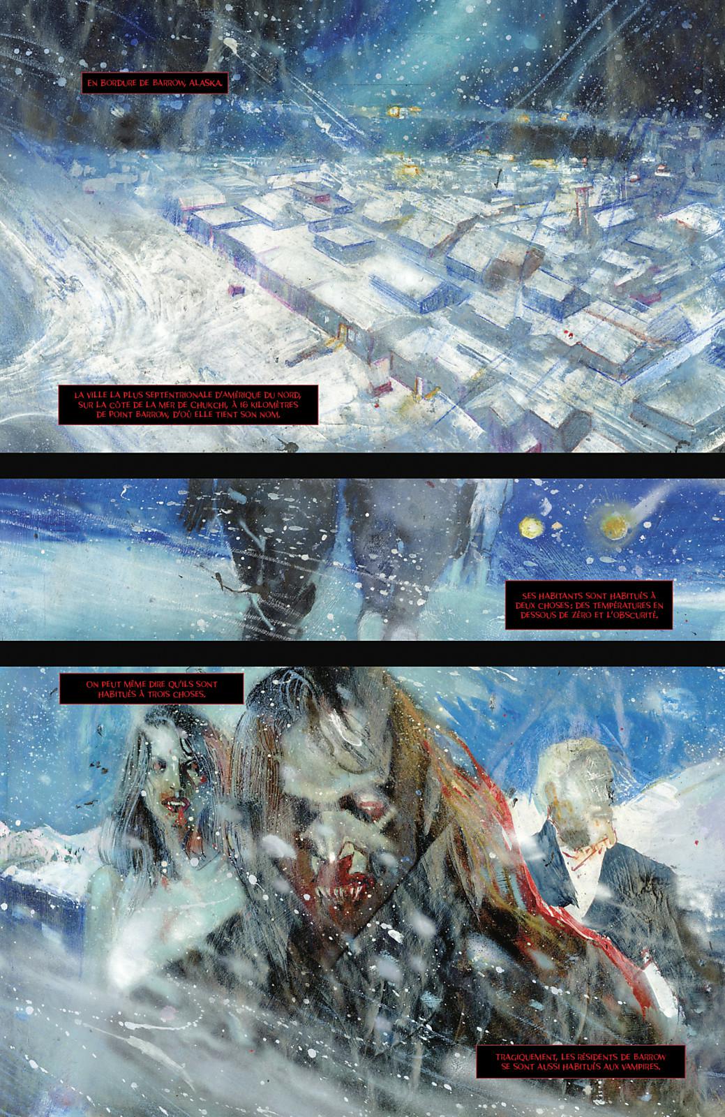 Barrow, Alaska. La ville la plus au nord des USA, située à quelques kilomètres de Point Barrow, d’où elle tire son nom. Ses habitants sont habitués à deux choses : le baromètre en dessous de zéro et vivre dans une obscurité totale un mois par an. Ce qui les a également habitués à affronter chaque année les attaques de vampires. Ce n’est malheureusement pas le cas des nouveaux arrivants...