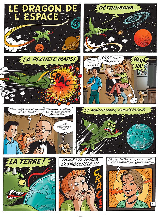 Le milliardaire William S. Contanbank annonce une nouvelle sensationnelle : le financement d’une expédition vers la planète Mars ! Et qui va-t-il choisir comme équipage ? Mais les 4 As, bien sûr, persuadé, grâce à la lecture des 41 albums de leurs aventures, qu’ils réussisent toujours dans leurs entreprises ! Aussitôt dit aussitôt fait : Lastic, Dina et Oscar embarquent dans le vaisseau du Professeur Tube, tandis que Doct et Bouffi les assistent depuis la Terre. Mais ce qu’ignorent les 4 As, c’est que la fusée a des passagers clandestins : le docteur Hargnon et le colonel Ostrogoth, de vieux adversaires... Quant à ce qu’ils vont tous découvrir sur la planète rouge... Chut, ne dévoilons pas le suspense ; mais une chose est sûre : c’est énorme !