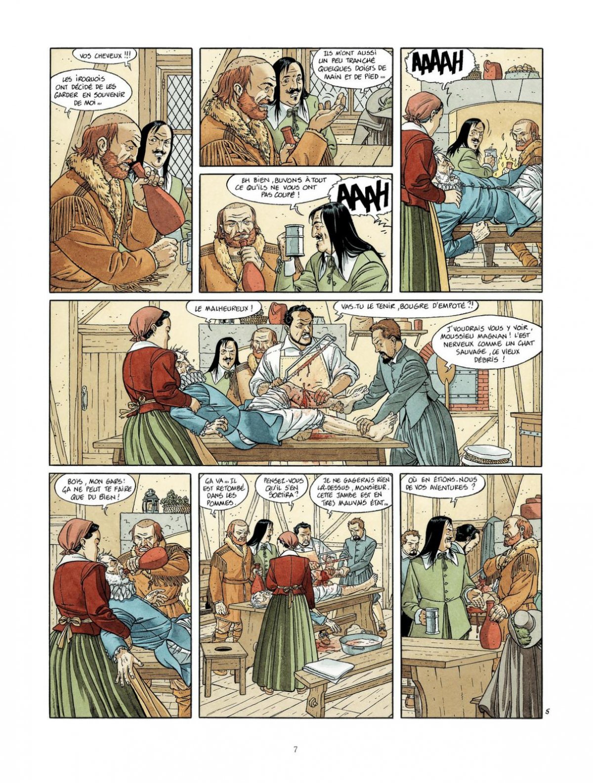 Ariane, baronne de Troïl, pour les français et "plume aux vents" ou "Lionne des montagnes" pour les indiens, est au Québec à la recherche de son pèreque l’on appelle, en iroquoisie, "L’Oiseau Tonerre". Capturée par les indiens, elle suscite l’amour de deux hommes. Des tribus se la disputent. Ballotée, déterminée, forte et fragile, Ariane ne sait plus, paraît attendre, à certains moments même presque souhaiter la mort, car celui qu’elle appelle son père a refusé de la reconnaître. l’indien Beau, qui deviendra "Beau Ténébreux", semble l’émouvoir (et cela donne une scène amoureuse qui ravira les amateurs amis du pudique André Juillard) et puis, à nouveau, le sang va couler...