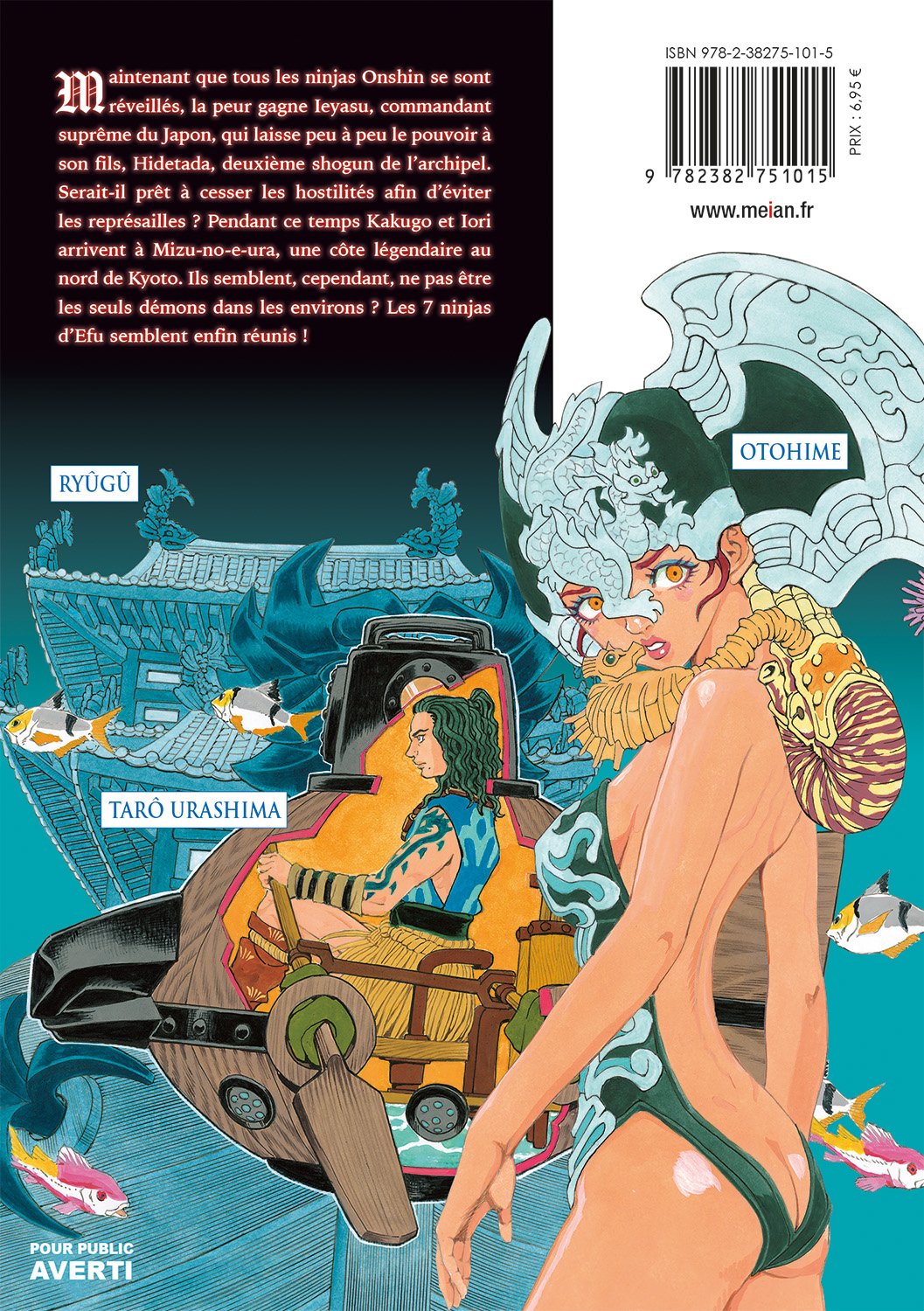 Maintenant que tous les ninjas Onshin se sont réveillés, la peur gagne Ieyasu, commandant suprême du Japon, qui laisse peu à peu le pouvoir à son fils, Hidetada, deuxième shogun de l’archipel. Serait-il prêt à cesser les hostilités afin d’éviter les représailles ? Pendant ce temps Kakugo et Iori arrivent à Mizu-no-e-ura, une côte légendaire au nord de Kyoto. Ils semblent, cependant, ne pas être les seuls démons dans les environs ?