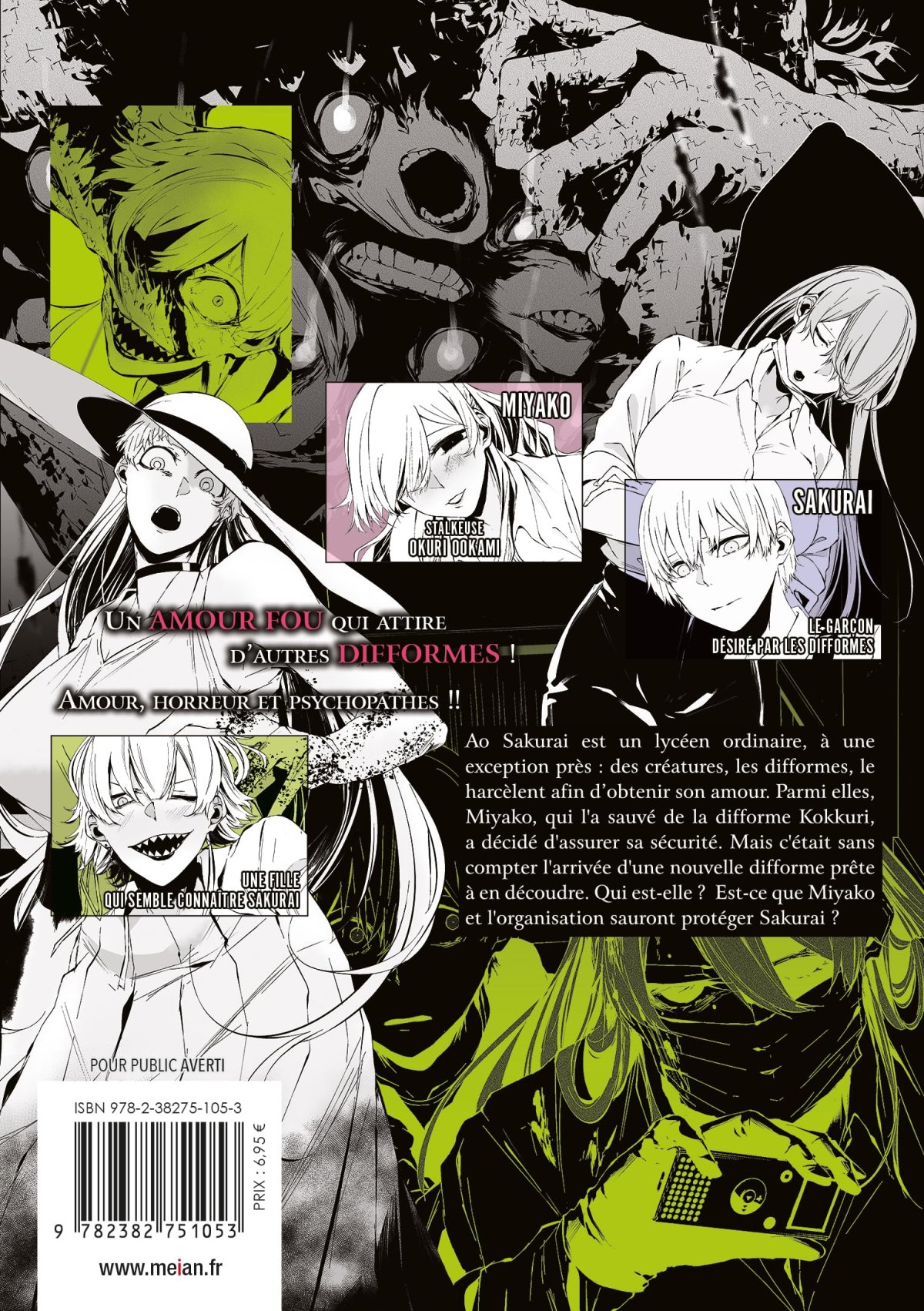 Ao Sakurai est un lycéen ordinaire, à une exception près : des créatures, les difformes, le harcèlent afin d’obtenir son amour. Parmi elles, Miyako, qui l’a sauvé de la difforme Kokkuri, a décidé d’assurer sa sécurité. Mais c’était sans compter l’arrivée d’une nouvelle difforme prête à en découdre. Qui est-elle ? Est-ce que Miyako et l’organisation sauront protéger Sakurai ?