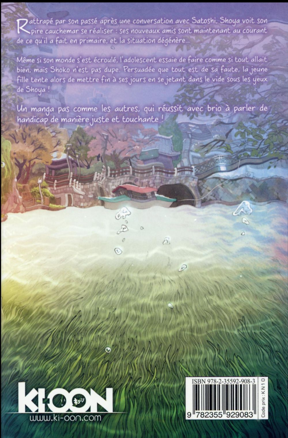 Même si son monde s’est écroulé, l’adolescent essaie de faire comme si tout allait bien, mais Shoko n’est pas dupe. Persuadée que tout est de sa faute, la jeune fille tente alors de mettre fin à ses jours en se jetant dans le vide sous les yeux de Shoya !