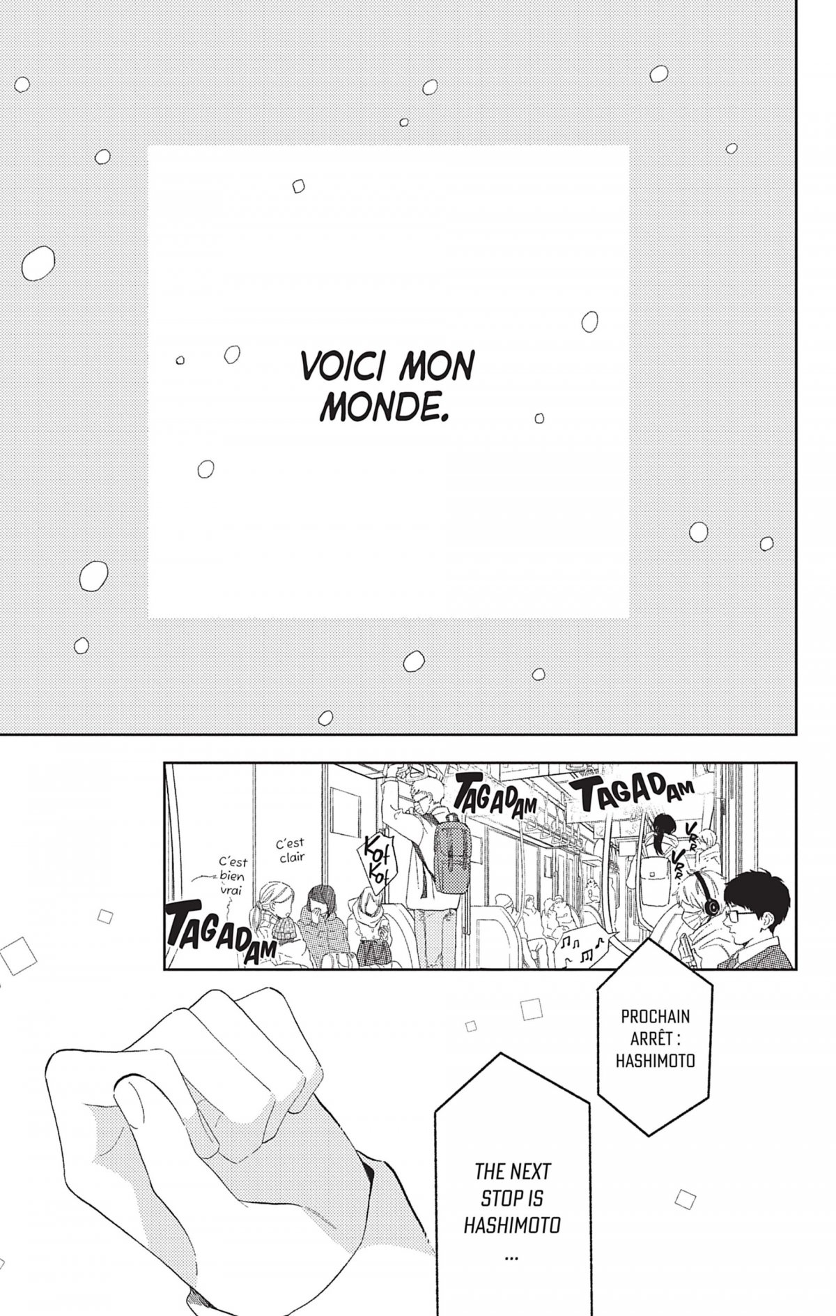 Yuki est une étudiante qui, comme beaucoup d’autres, construit son quotidien autour de ses amis, des réseaux sociaux et de ce qu’elle aime. Mais quand un jour, dans le train, elle croise un jeune homme qui voyage à travers le monde, son univers va être chamboulé : ce dernier, bien que trilingue, ne connaît pas la langue des signes. Pourtant, très vite, il manifestera pour elle un intérêt bien particulier… Comment réagira-t-elle face à ce camarade d’université entreprenant et communicatif ?