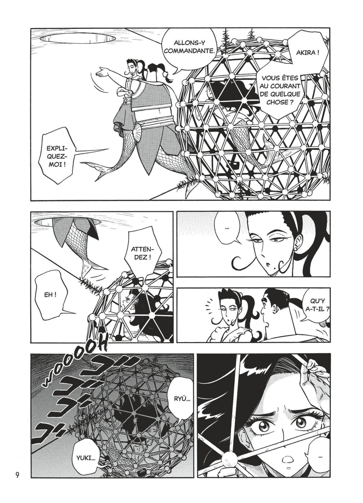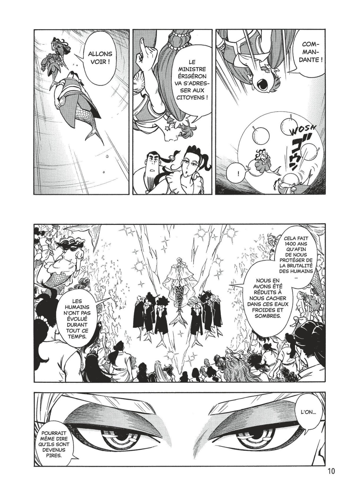 Afin d’échapper à l’emprise d’Érigéron, Jo demande à la police des sirènes de l’arrêter. Elle est donc enfermée dans une cage pendant un moment. Mais la commissaire, doutant de la bonne intention de l’homme politique, emmène notre héroïne avec elle au château en tant qu’espionne pour découvrir ce qu’il manigance. Jo, quant à elle, est bien décidée à retrouver ses amis Ryû et Yuki et à les libérer de l’emprise du seigneur Érigéron. Elle réussit tant bien que mal à les retrouver, mais elle n’est pas au bout de ses surprises, car elle découvre le véritable objectif de ce dernier : créer des enfants hybrides mi-humains mi-sirènes et utiliser leurs pouvoirs pour s’emparer de la mer...L’autrice conclut son récit dans un tome haut en rebondissements et en émotions...