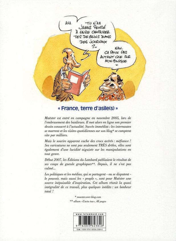 Ils sont fous, ces gaulois ! A force de marcher sur la tête, ça devait finir par arriver... Heureusement, certains, tel Maëster, gardent la tête froide et tentent une thérapie par l’humour. Un an après « L’Actu tue », le célèbre dessinateur remet le couvert et dissèque l’année 2007 à la pointe de sa plume. Compilation des meilleurs coups de gueule issus de son blog, assortis de quelques inédits, ce livre est dédié à tous ceux qui, à l’instar du caricaturiste, ont fait leur cette pensée de Romain Rolland : « Quand l’ordre est injustice, le désordre est déjà un commencement de justice »..