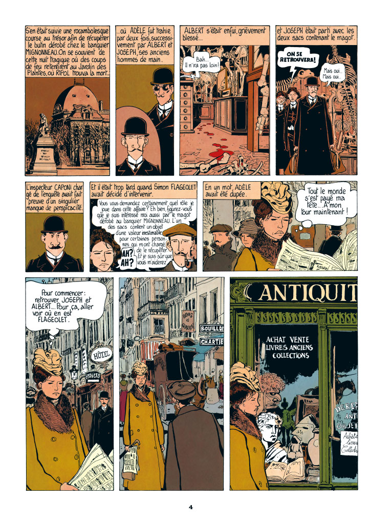 En ce mois de décembre 1911, Paris est secouée par la brusque réapparition de la peste et par une mystérieuse vague de disparitions sur le Pont-Neuf. Adèle, déterminée à venger la mort de son ami Lucien Ripol, mène l’enquête, persuadée qu’un lien existe entre ces trois affaires. Affrontant tour à tour Albert, son ancien complice, et une redoutable secte d’adorateurs du démon Pazuzu, arrivera-t-elle à échapper aux différentes menaces qui planent sur elle ?