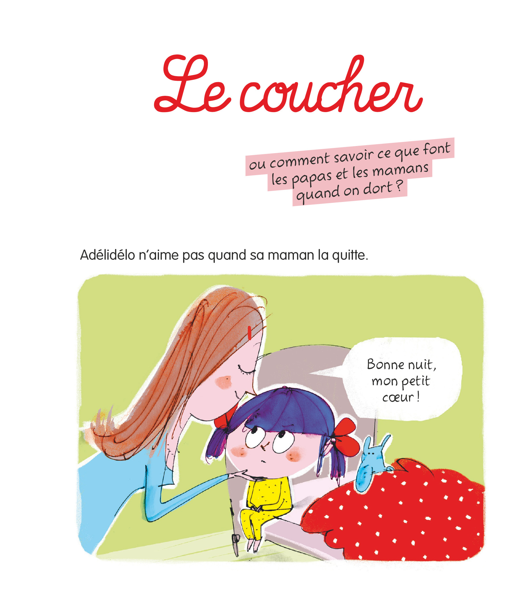 Comment s’amuser avec un petit frère dans son bain ? Comment se transformer en petit père Noël ? Quels sont les bons côtés d’une maladie ? Et d’un pipi au lit ? Comment faire quand on se sent envahi par la jalousie ou quand on est trop énervé pour s’endormir ? Telles sont les questions que se pose la curieuse, bavarde et infatigable Adélidélo !