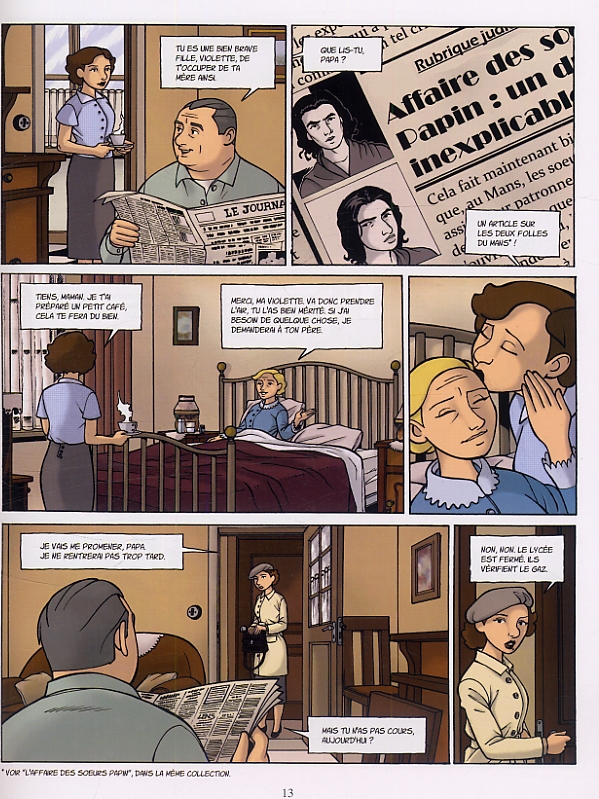 Ce parricide se retrouva très vite à la une des journaux et déchaîna les passions. Malgré le soutien des surréalistes, et notamment de Paul Éluard, Violette fut condamnée à la guillotine le 13 octobre 1934. Le 25 décembre de la même année, le président Albert Lebrun la gracia, commuant la peine de mort en réclusion à perpétuité. Le maréchal Pétain ayant réduit sa peine à douze années, Violette Nozière recouvrit la liberté le 29 août 1945. Elle retrouva une vie normale, se maria, eut des enfants et fut fi nalement réhabilitée par la cour d’appel de Rouen le 18 mars 1963, trois ans seulement avant sa mort