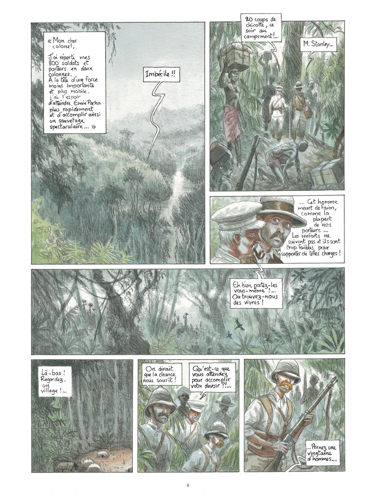 1903. Afin de recueillir les souvenirs et le témoignage de celui qui fut l’un des héros de la colonisation de l’Afrique, et notamment du Congo pour le compte du roi Léopold, un jeune reporter belge rend visite à Henry Morton Stanley dans son domaine du Surrey, où l’explorateur vieillissant, malade et presque infirme s’est retiré du monde. En veine de confidences, Stanley se remémore pour son visiteur la célèbre expédition de secours à Emin Pacha. Ses souvenirs sont enchanteurs, éblouis. Mais à mesure que le flash back se précise, la violence barbare du comportement de Stanley à l’égard des Africains se révèle dans toute son horreur sanglante. L’expédition Emin Pacha est restée célèbre parce qu’elle fut la dernière grande expédition privée du XIXe siècle au coeur de l’Afrique, mais aussi pour avoir été la plus meurtrière pour les populations qui avaient le malheur de se trouver sur son chemin... Voici le troisième volume de la saga africaine de Frédéric Bihel et Maryse et Jean-François Charles. Adossée à une solide reconstitution historique, cette histoire âpre et prenante évoque de manière saisissante la cruelle histoire du Congo au tournant des XIXe et XXe siècles, mis en coupe réglée par le Roi des Belges et son représentant le plus impitoyable, l’explorateur Stanley.