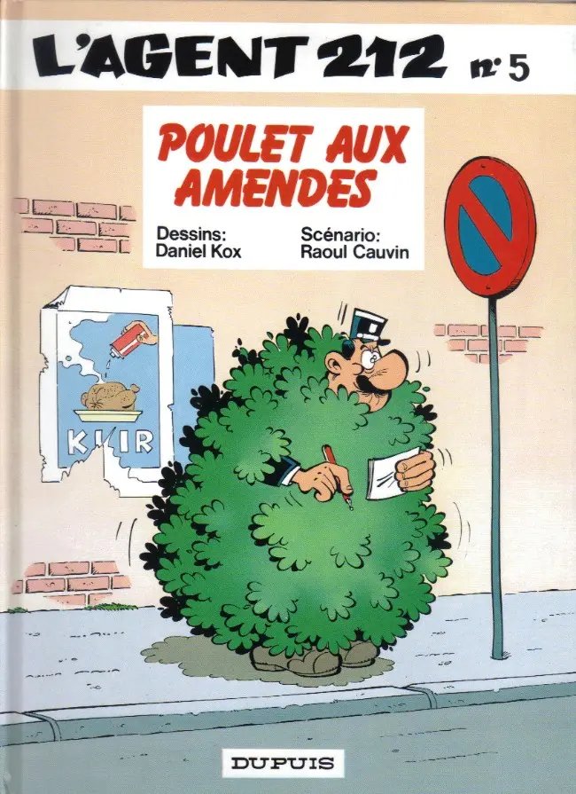 Poulet aux amendes est le volume 5 de la série Agent 212 (L’) par Raoul Cauvin et Daniel Kox, paru en 1986. Selon nos informations, il en existe 4 éditions, dont la principale est éditée par Dupuis en 1986.