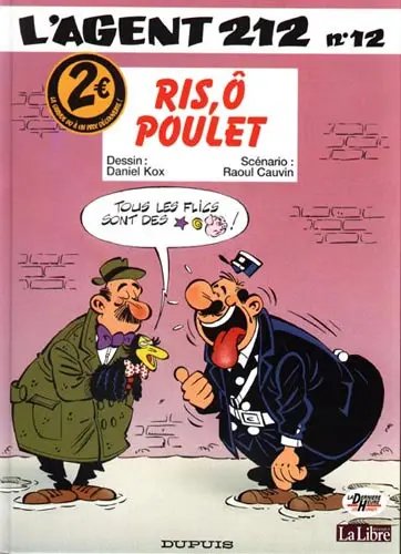 Riz, ô poulet est le volume 12 de la série Agent 212 (L’) par Raoul Cauvin et Daniel Kox, paru en 1990. Selon nos informations, il en existe 5 éditions, dont la principale est éditée par Dupuis en 1990.