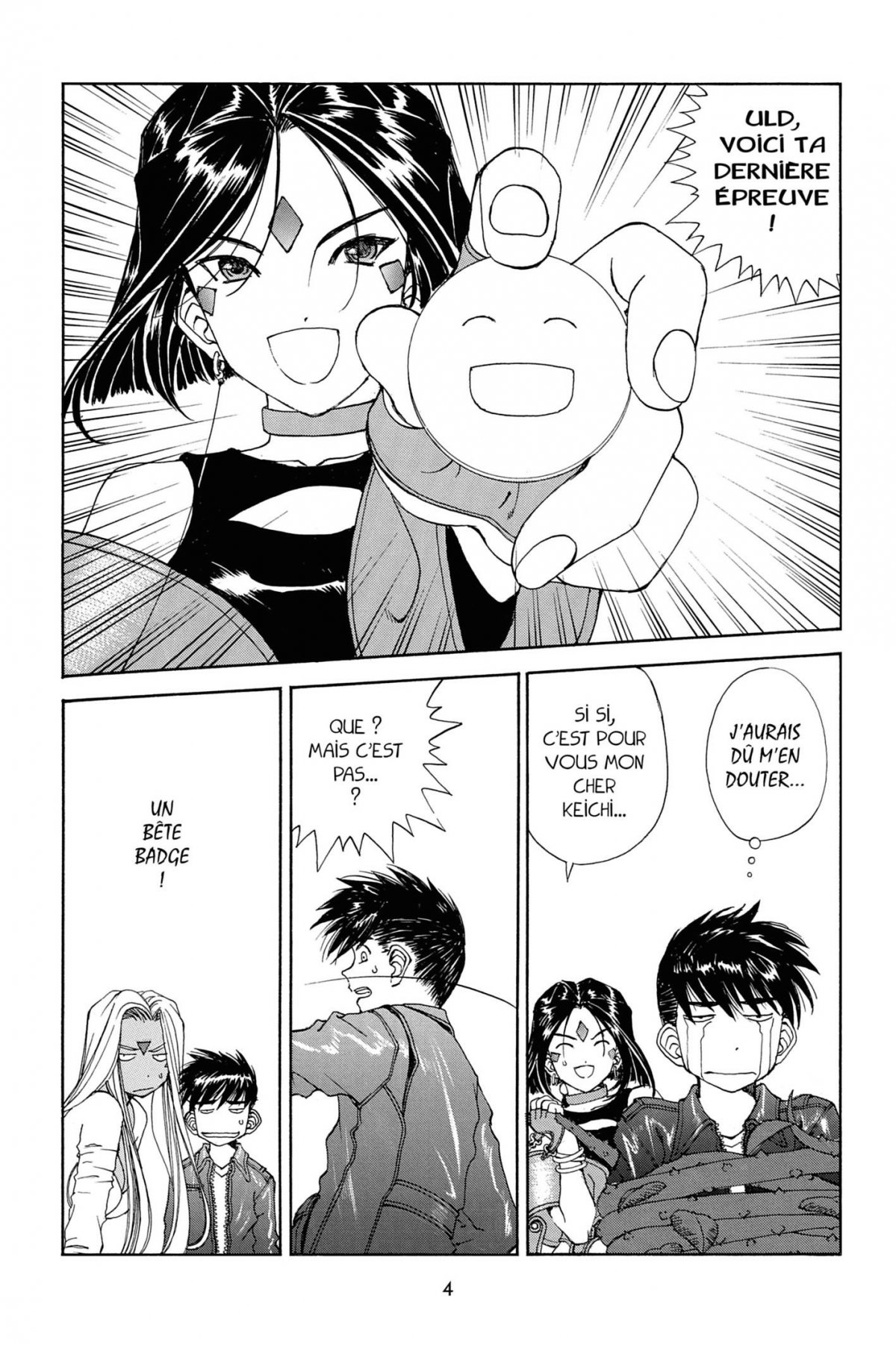 Uld doit subir une ultime épreuve pour devenir déesse de première catégorie. Il s’agit cette fois de faire en sorte que Keichi soit heureux ! Elle y parvient en fin de journée et est ainsi reçue à l’examen. Mais elle refuse ce nouveau grade et préfère rester déesse de seconde catégorie... Les responsabilités des déesses de première catégorie ne correspondent en rien à ses aspirations...