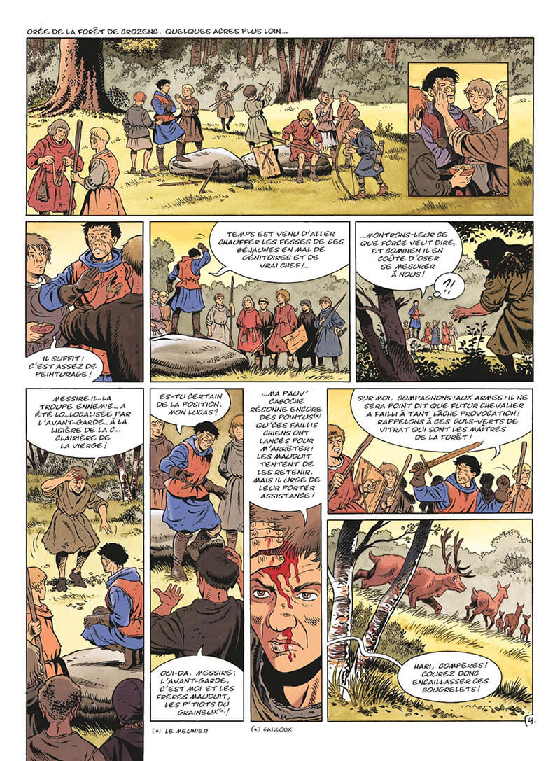 Mai 1260. A l’aube... Emergeant lentement des brumes nocturnes, la forêt de Crozenc s’éveille en frémissant... Et pourtant... Les enfants des deux villages voisins se livrent à une querelle sans rémission dans la clairière de la Vierge, considérée par les habitants de Crozenc comme un lieu de recueillement. Mus par une haine qu’on attribue généralement aux adultes, ces guerriers en culottes courtes se rossent de coups de bâtons et d’épées qui dépassent de loin le simple amusement. La haine n’a-t-elle donc point de limite ...Ce vent de folie qui souffle sur la forêt semble loin de perturber la forteresse des maîtres... Mais ne parlons pas trop vite... Voilà qu’arrive Percerouge, affolé, souhaitant à tout prix s’entretenir avec Messire Conan. Un nouveau malheur frappe Crozenc... Il aurait remis ça... Mais qui est ce « il » ?