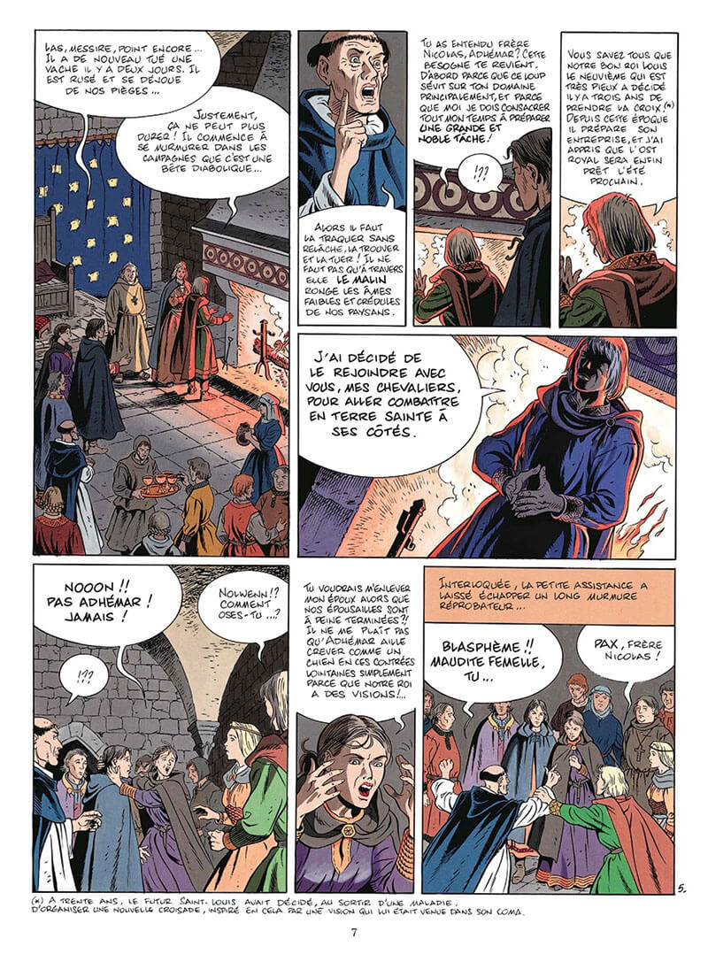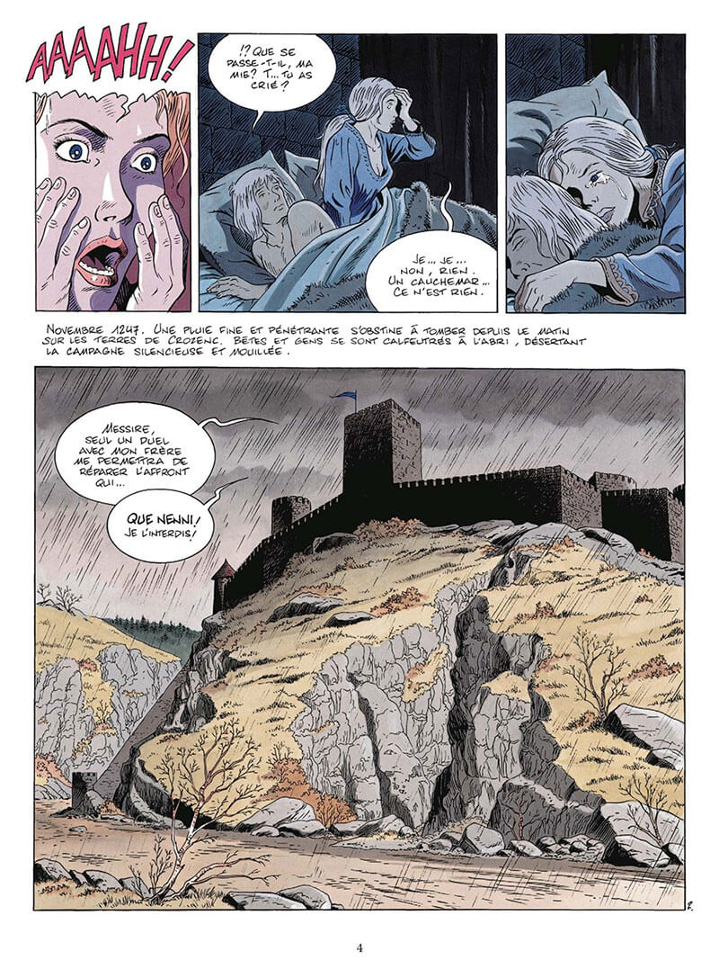 Afin de conserver son titre, Hugues de Crozenc décide de partir en croisade sous la bannière de son rival de toujours : Lusignan. Parmi les chevaliers qui doivent l’accompagner en Terre Sainte, on trouve Adhémar qui vient d’épouser la belle Nolwenn. Cette dernière ne veut pas voir partir son époux. Aussi, quand un loup sème la terreur sur ses terres, elle décide d’aider la bête mystérieuse pour retenir son mari. Mais elle n’est pas la seule à trouver intérêt dans la terreur que provoque la bête... Décidément, le loup de Cuzion semble animé par bien des haines et des convoitises...