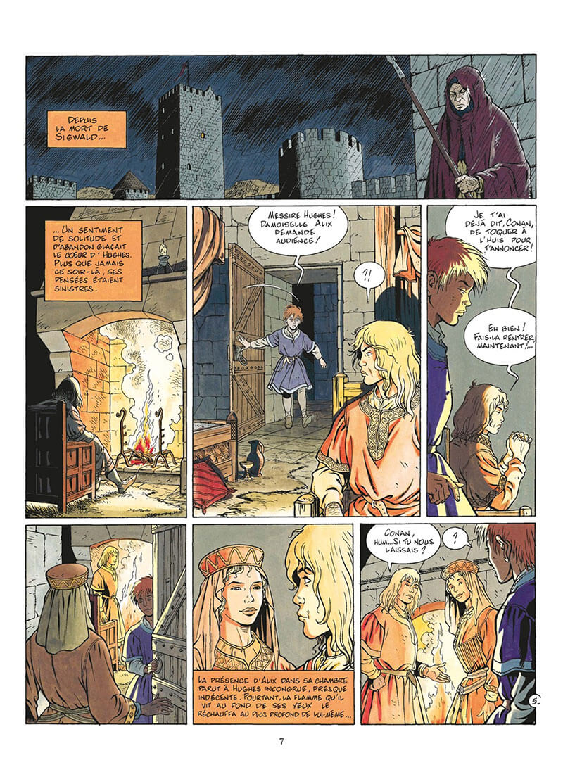 Hugues de Crozenc, l’enfant sans passé, devenu seigneur de Crozenc, enterre son vieux compagnon d’aventure, Sigwald. Très vite les problèmes lui font oublier sa peine. Damoiselle Alix se donne à lui dans une étreinte brûlante alors que dans un cachot l’impudique Nolwenn attend le jugement d’Alphonse de Poitiers. Elle sait qu’elle risque la mort mais Alix qui la prend en pitié veut l’aider à fuir. Ce qu’elle ignore, c’est que celle qui a voulu se faire épouser par Hugues porte en elle un enfant conçu par le seigneur de Crozenc. Ainsi débute ce nouveau chapitre des Aigles décapitées. Aux combats sanglants succèdent les histoires d’alcôves mais que l’on se rassure, Jean- Charles Kraehn et Michel Pierret donnent une image à la fois sensible et authentique de la vie quotidienne en des temps où survivre était une gageure. Parfaitement rodé avec les albums précédents, Michel Pierret réussit le tour de force de retrouver le trait du créateur de la série. Un travail soigné et séduisant qui renouvelle les grands classiques de la bande dessinée historique.
