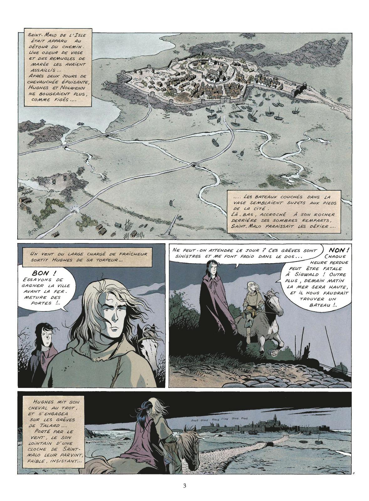 Accroché à son rocher derrière ses sombres remparts, Saint-Malo de l’Isle s’endort... Les gardiens de la ville, 24 molosses lâchés sur les grèves désertes, veillent... C’est dans cette cité aux abords sinistres que Hughes, accompagné de Nolwenn, est venu chercher la rançon que réclament l’Hérétique et sa bande de naufrageurs pour libérer Albizzi et Sigwald. Mais Hughes sera victime d’un complot. Le temps presse car Sigwald, son écuyer, est gravement blessé... Ambiance prenante, couleurs somptueuses, côtes bretonnes balayées par le souffle des légendes.