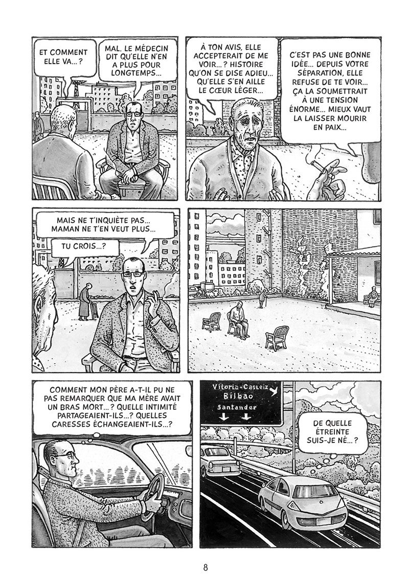 C’est une jeune fille pimpante, mais cachant un profond dégoût des hommes, qui épouse finalement Antonio Altarriba Senior, le père de l’auteur. Lequel verra en sa mère une femme craintive et froide, meurtrie par un pays où le machisme sévit sans retenue, réfugiée dans la plus obtuse des ferveurs religieuses. Il devra attendre les derniers instants pour découvrir, sur le lit de mort de Petra, l’impossible secret de son aile brisée, écho déchirant au désir de voler contrarié de son mari, qui dessine d’elle un portrait bien différent de celui qu’il imaginait.