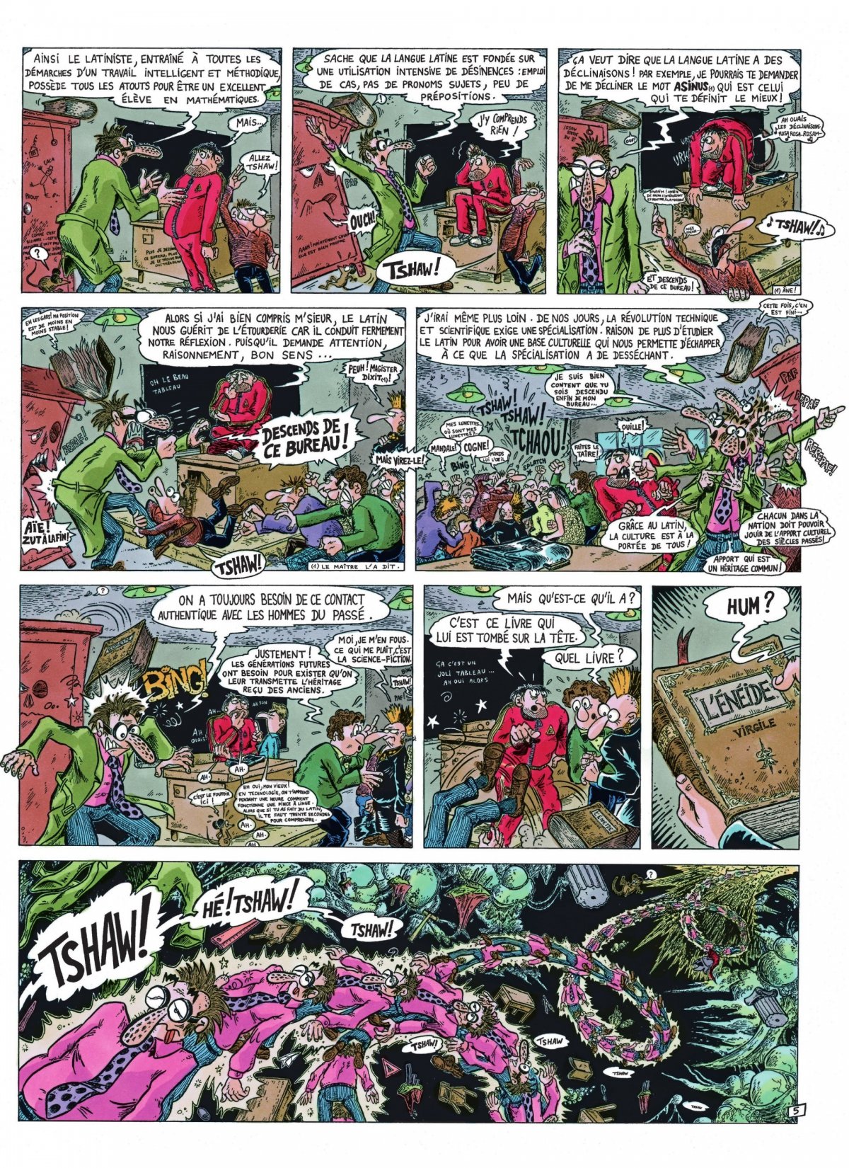 Après son extraordinaire aventure en Grèce, notre héros, Alcibiade Didascaux, professeur de latin, n’est pas prêt à renouveler l’expérience d’un retour dans le temps comme l’y invite son collègue le professeur de Physique Agénor. Qu’à cela ne tienne ! Un énorme volume de l’Enéide juché sur une armoire de classe échoit sur son crâne et l’assomme. Le voilà parti en rêve dans la Rome primitive dont il revit l’époque légendaire. Il aura la désagréable surprise de s’éveiller dans l’abominable machine du professeur Agénor auquel l’ont amené ses élèves pendant son sommeil et il ne peut échapper cette fois à une nouvelle expérience. Nous le retrouvons en 509 avant J.-C. dans une tombe étrusque, contraint de revivre l’histoire de rome après en avoir rêvé la légende. Par bonds successifs dans le temps, il parcourt cette histoire jusqu’à ce qu’il se retrouve enrôlé comme légionnaire dans les armées du consul Marius. C’est le début de nouvelles aventures que nous raconte le deuxième volume, consacré à l’époque impériale.
