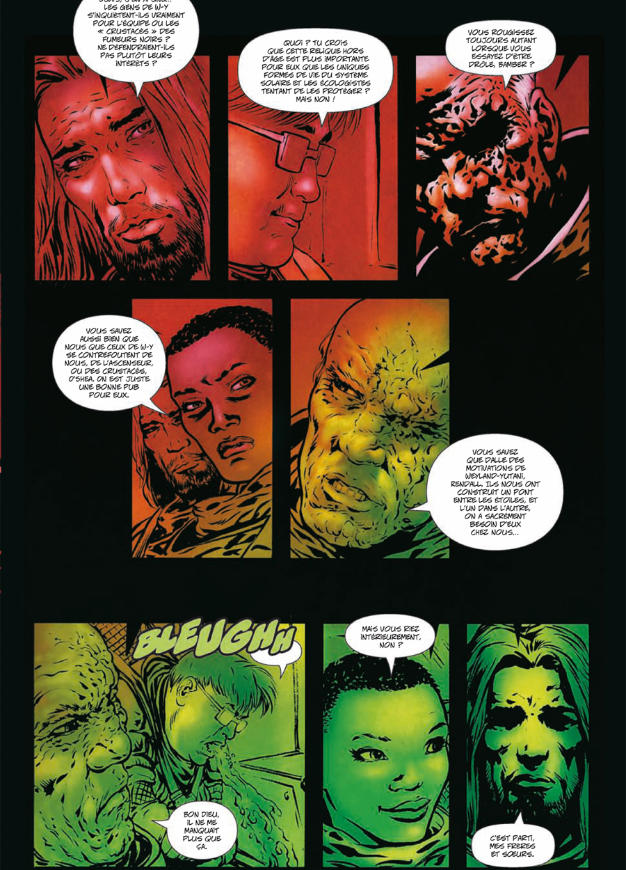 Sur Europe, le satellite de Jupiter, la vie grouille grâce à l’activité volcanique qui nourrit des océans profondément enfouis sous la glace. Mais Europe n’est qu’une halte commerciale parmi tant d’autres, avec sa station orbitale et ses vieilles navettes transportant hommes et matériel de et vers la Lune. Mais alors qu’une navette s’arrête à mi-chemin, toutes communications coupées, l’équipe de sauvetage découvre une cargaison mortelle : un organisme sauvage qui menace la vie sur Europe, voire la vie sur la planète Terre. Par l ?auteur de Judge Dredd, L ?Incroyable Hulk, Gears of War. Cet album regroupe trois aventures : Paradis express par Liam Sharp, Incubation par Ron Marz et Bernie Wrightson, Apparition par Jay Stephens et Eduardo Risso.