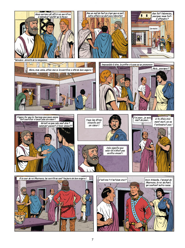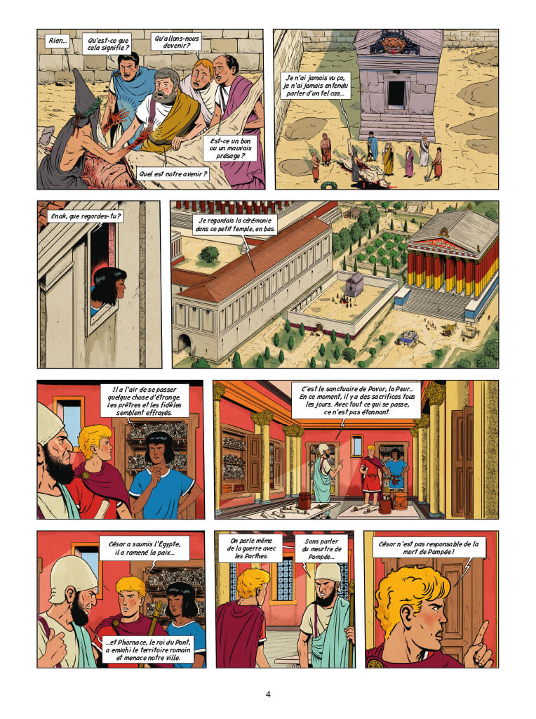 En mission pour César à Samosate, Alix et Enak explorent la ville : ils sont en charge de ramener des livres afin de constituer une bibliothèque pour Rome, à l’image de celle d’Alexandrie. Mais autour de lui, les gens s’agitent. Certains évoquent un mauvais présage, d’autres regardent les Romains d’un mauvais œil depuis le suicide de Mithridate, souverain trahi par son fils Pharnace, qui s’est allié aux Romains. Alix quant à lui, semble victime d’hallucinations mais, il en est sûr, un complot se trame, il doit prévenir César !