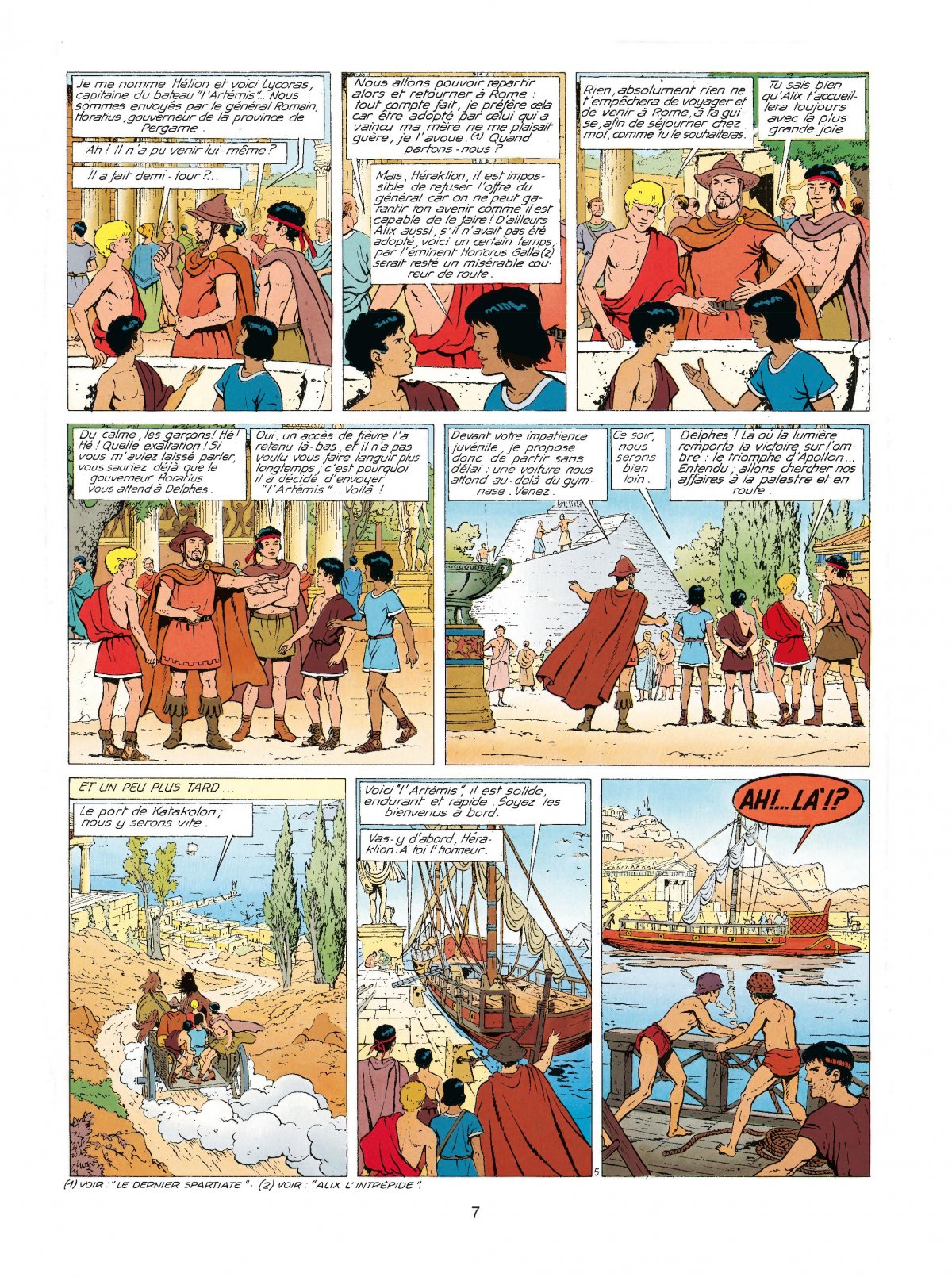 Le jeune Héraklion est le seul survivant des derniers spartiates. Horatius, le général romain qui a mené la sanglante expédition punitive, est pris de remords et veut adopter l’enfant. Il invite Alix, Enak et Héraklion à Priène, où se trouve gardé le véritable cheval de Troie. Mais les anciens troyens veulent le détruire pour effacer la honte infligée à leur ville et à son peuple des siècles plus tôt