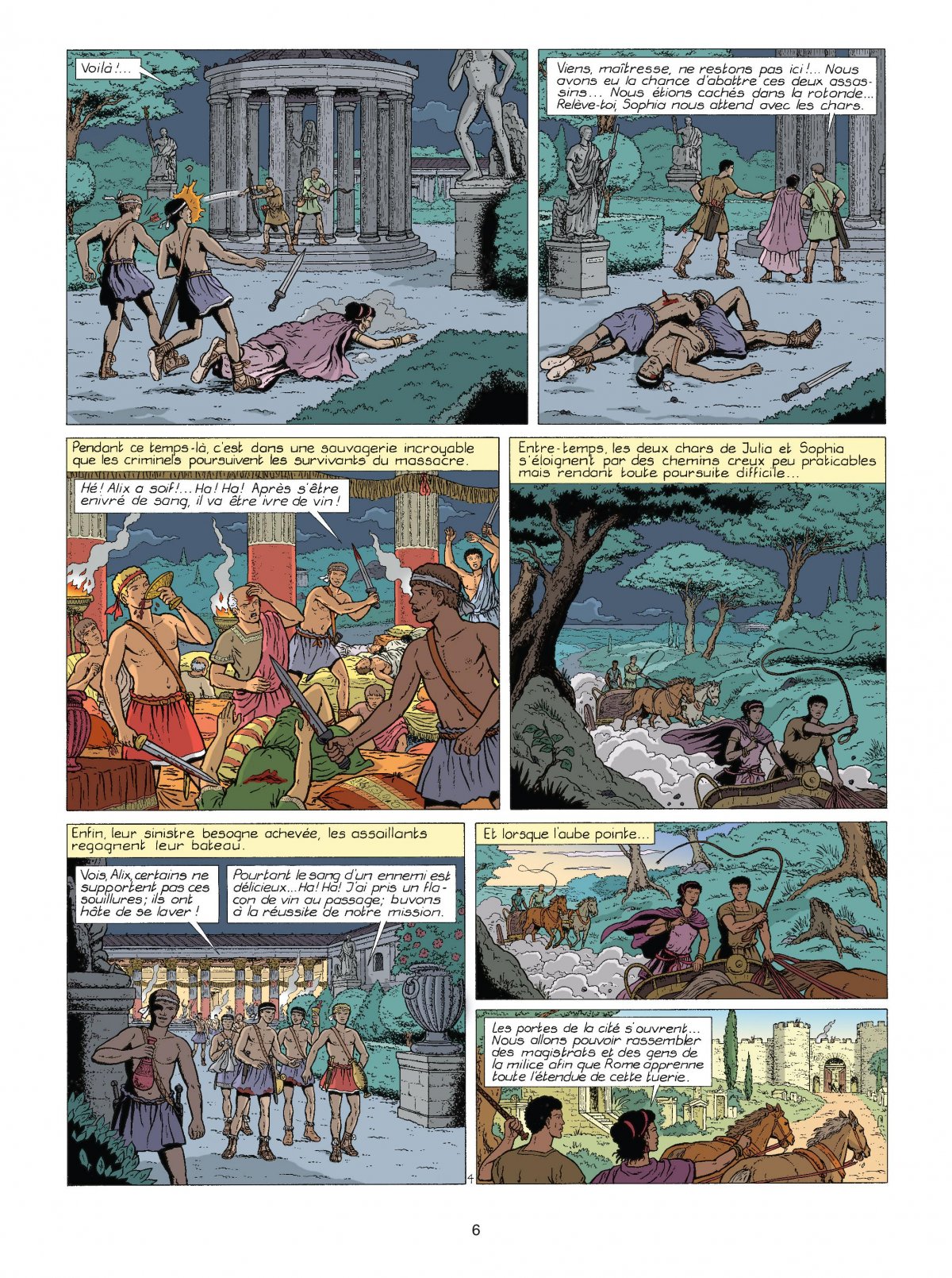 Somptueuse, la fête bat son plein dans la villa du sénateur Caius Quintus Arenus près d’Ostie, là où la plupart des Romains fortunés ont installé leurs villas balnéaires. Un navire s’approche, tout illuminé, plein de musique : il transporte Alix, entouré de nombreux compagnons, qui vient se joindre à la grande soirée. Mais bientôt, le banquet dégénère. Vindicatif, Alix s’en prend vertement à son hôte, et soudain, donne le signal des hostilités : toute l’assemblée est massacrée sur place, à l’exception de l’épouse du sénateur, Julia, qui parvient miraculeusement à s’enfuir... S’agit-il bien d’Alix, méconnaissable ? Ou d’une diabolique machination destinée à le perdre ?