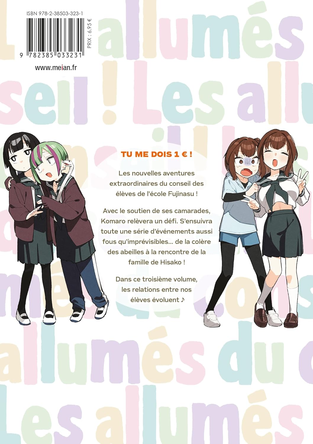 Allumés du conseil (Les) ! 3 est le volume 3 de la série Allumés du conseil (Les) ! par Muchimaro, paru en 2024. Selon nos informations, il n'en existe qu'une seule édition, publiée par Meian.