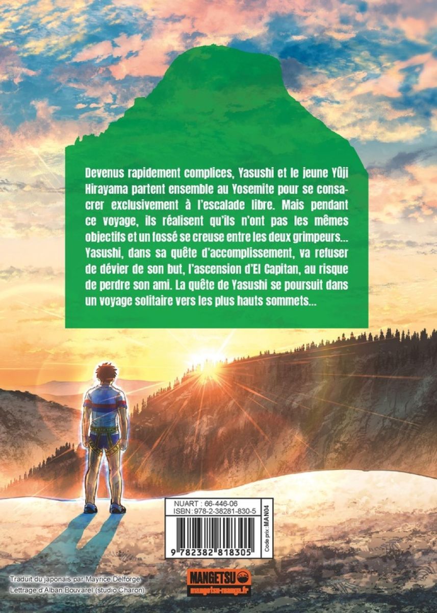 Devenus rapidement complices, Yasushi et le jeune Yûji Hirayama partent ensemble au Yosemite pour se consacrer exclusivement à l’escalade libre. Mais pendant ce voyage, ils réalisent qu’ils n’ont pas les mêmes objectifs et un fossé se creuse entre les deux grimpeurs... Yasushi, dans sa quête d’accomplissement, va refuser de dévier de son but, l’ascension d’El Capitan, au risque de perdre son ami. La quête de Yasushi se poursuit dans un voyage solitaire vers les plus hauts sommets...