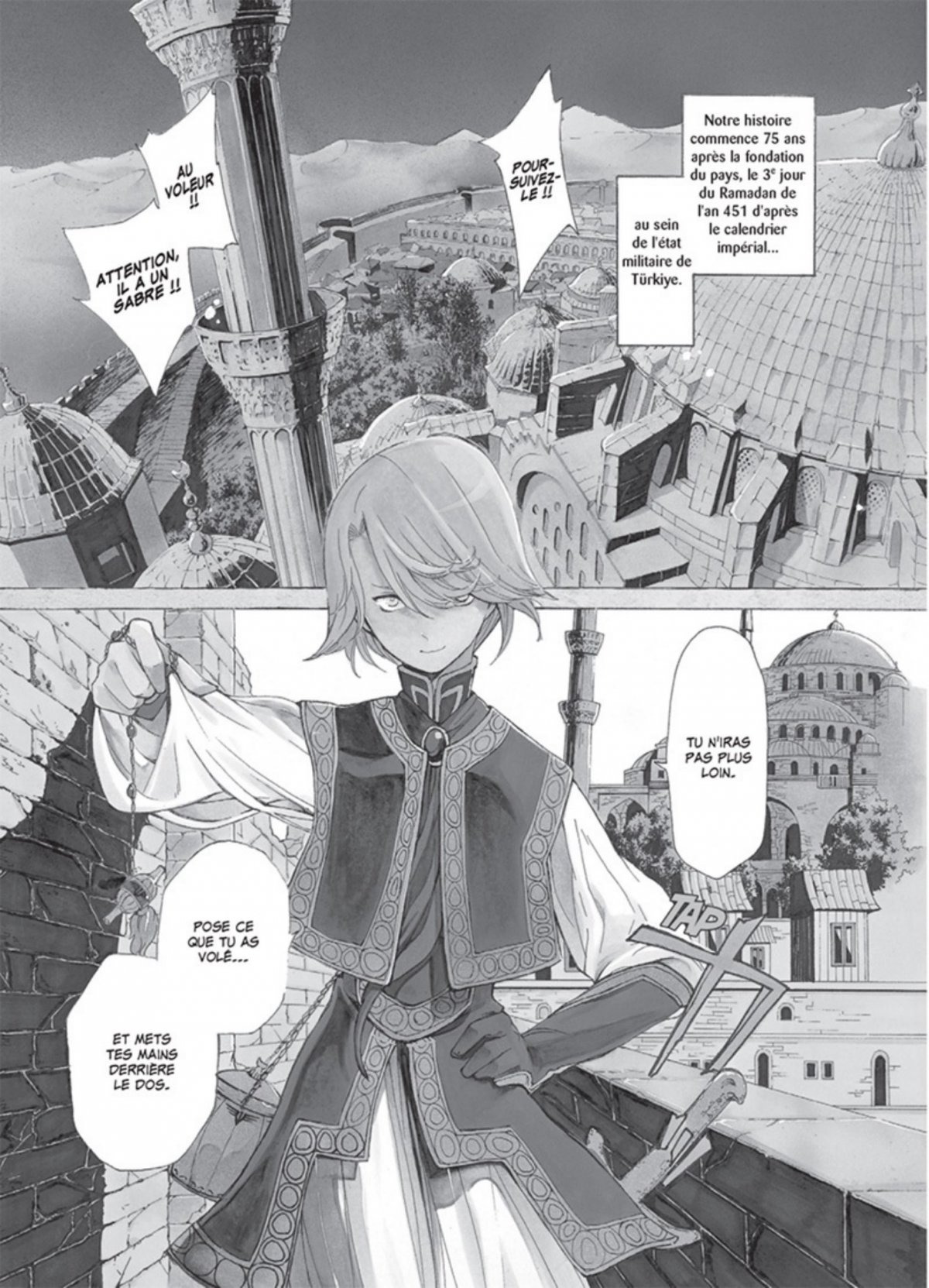 Au jeu des stratèges, il faut vaincre ou périr Dans un univers fantastique très fortement inspiré du bassin méditerranéen à l’époque où les empires rivalisaient de puissance...Mahmut est le plus jeune homme à accéder au rang de pacha, général de haut rang dans la stratocratie de Türkiye. Accompagné d’Iskandar, son fidèle aigle royal, ce pacifiste sillonne le pays pour déjouer les conflits. Malheureusement, tous ses compatriotes ne partagent pas ses convictions et l’empire Balt-Rhain guette la moindre occasion pour étendre son territoire... Notre héros arrivera-t-il à conserver son intégrité au milieu de ces jeux de pouvoir où complots et trahisons sont monnaie courante ?À la manière de Game of thrones, ce shônen vous emportera dans un monde où de splendides scènes d’action, de batailles, de guerres se mêlent aux affrontements politiques de haut niveau. La beauté du graphisme illustre admirablement cet univers mélangeant les diverses influences autour de la Méditerranée. L’auteure, qui signe là sa première série, s’inspire de pays, personnes et stratégies réelles, pour les réinterpréter à sa manière. Après lecture d’Altaïr, la géopolitique n’aura plus de secret pour vous... La guerre non plus !