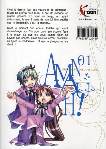 Amanchu ! 1 est le volume 1 de la série Amanchu ! par Kozue Amano, paru en 2011. Selon nos informations, il n'en existe qu'une seule édition, publiée par Ki-oon.