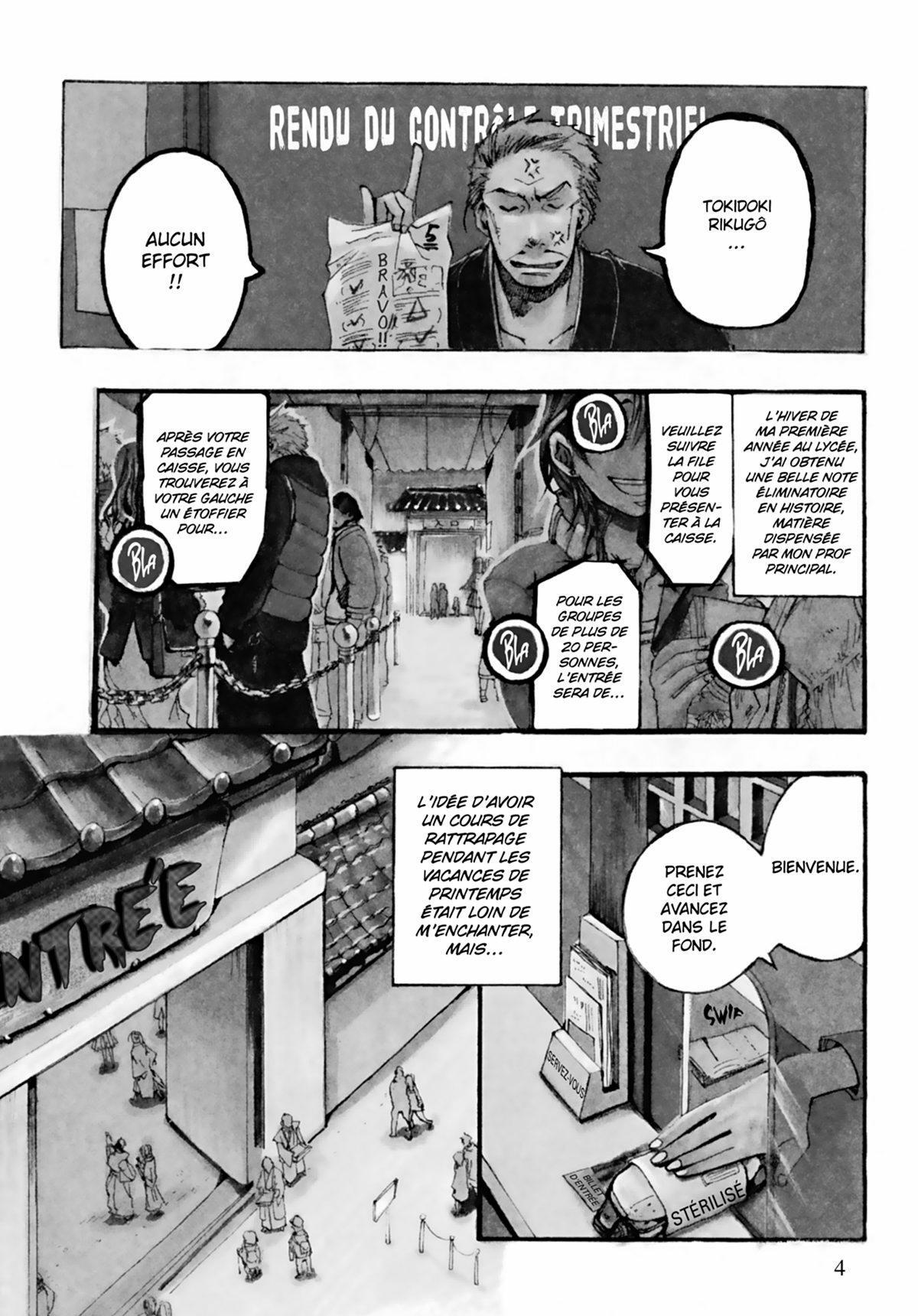 Tokidoki est un lycéen plutôt nonchalant qui, pour combler ses lacunes en Histoire, est gentiment envoyé dans un musée. Mais ce musée est d’un genre nouveau : il propose une véritable immersion virtuelle dans le Japon de l’ère Edo au moyen d’un dispositif de lunettes révolutionnaire. Facétie du programme ou simple bug, le jeune homme se retrouve nez à nez avec un être étrange chevauchant un animal monstrueux tout droit sorti du bestiaire folklorique japonais. Tout tourne à l’horreur lorsque Tokidoki, blessé à l’oeil gauche par la bête féroce, se retrouve prisonnier du Japon du XIXe siècle alors que ses lunettes gisent sur le sol, brisées.