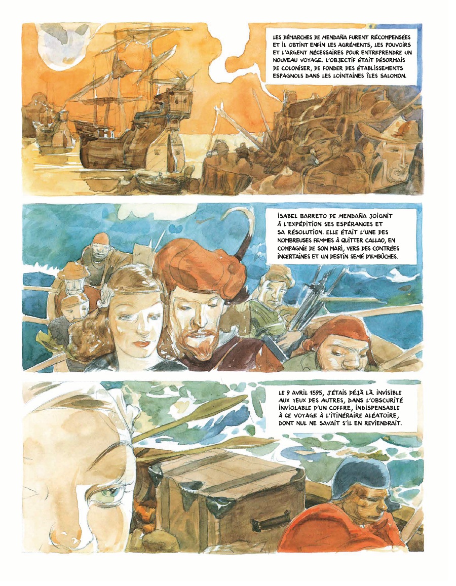 Commandé aux auteurs pour la commémoration des 500 ans de la découverte du continent américain, cet album raconte un épisode de l’histoire des conquistadors : un long périple jusque dans les lointaines îles Philippines dirigé d’une main de fer par Isabel Barreto, autoproclamée Adelantada après son veuvage.