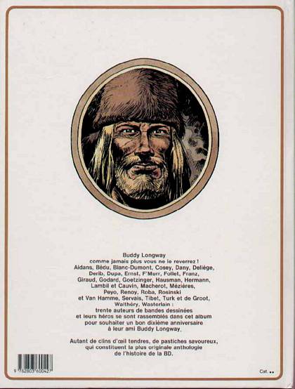 Amis de Buddy Longway (Les) est un album oneshot de Dupa, Paul Deliège, Bob de Groot, Christian Godard, Raoul Cauvin, Tibet, François Walthéry, Edouard Aidans / Joke, Derib, René Hausman, Cosey, Turk, Jean Roba, F’Murrr, Raymond Macherot, René Follet, Franz, Jean-Claude Servais, Willy Lambil, Jean-Claude Mézières, Peyo, Annie Goetzinger, Grzegorz Rosinski, Michel Blanc-Dumont, Hermann, Bédu, Marc Wasterlain, Moebius / Jean Giraud, Serge Ernst, Georges Pernin et Yvan Delporte, paru en 1970. Selon nos informations, il n'en existe qu'une seule édition, publiée par Lombard (Le).
