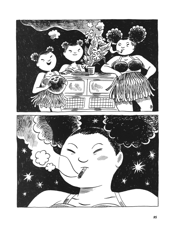 Inspirée par le kitsch tiki et les traductions françaises d’Agatha Christie, Cathon signe avec Les ananas de la colère un récit policier décalé se déroulant dans le fameux quartier hawaïen de Trois-Rivières.