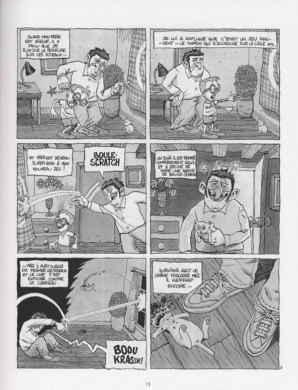 Andy & Gina sont peut-être toujours aussi jeunes, mais ils sont déjà très matures. Et quand Relom se lâche dans ses scénars sans rien lâcher sur son dessin, c’est trash et c’est poilant. Les deux gamins réalisent tous vos fantasmes d’enfants : faire fumer des crapauds, embrasser des princes charmants, taquiner les chats ou prostituer leur mère cul-de-jatte. Tout ça sous l’oeil attendri de leur Dick Rivers des campagnes de père qui poursuit sans relâche l’éducation de ses enfants : de l’art de dératiser aux finesses du sado-masochisme, ils apprennent très vite.