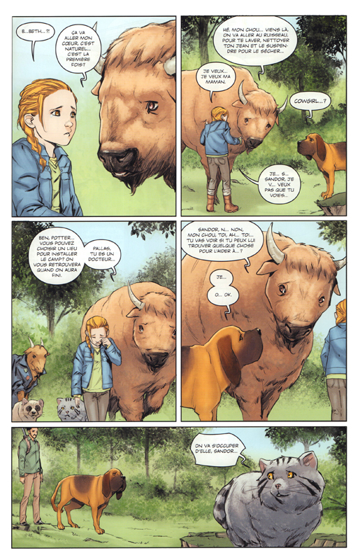 Ce tome est servi par une couverture qui promet de gros morceaux de baston et de tragèdies qui vont vous traumatiser. Si votre truc c’est la prise de pouvoir des animaux, les univers post-apocalyptiques, les histoires de road trip, alors Animosity est fait pour vous. C’est un titre qui remet délicatement, mais fermement en question vos choix et vos comportement envers les êtres vivants qui vous entourent.