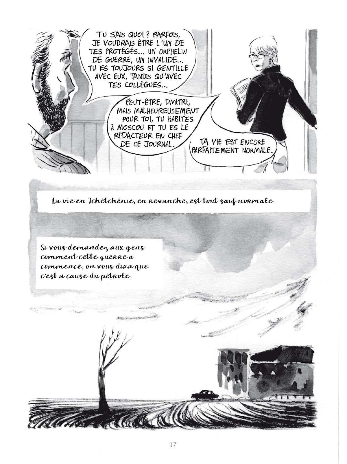 Née à New-York, enfant privilégiée de la Nomenklatura, la jeune Anna choisit le journalisme. L’année 1999 marque un tournant. Elle couvre le conflit en Tchétchénie pour Novaïa Gazetta et met, dès lors, le pied dans un engrenage qui va conduire à son assassinat sept ans plus tard