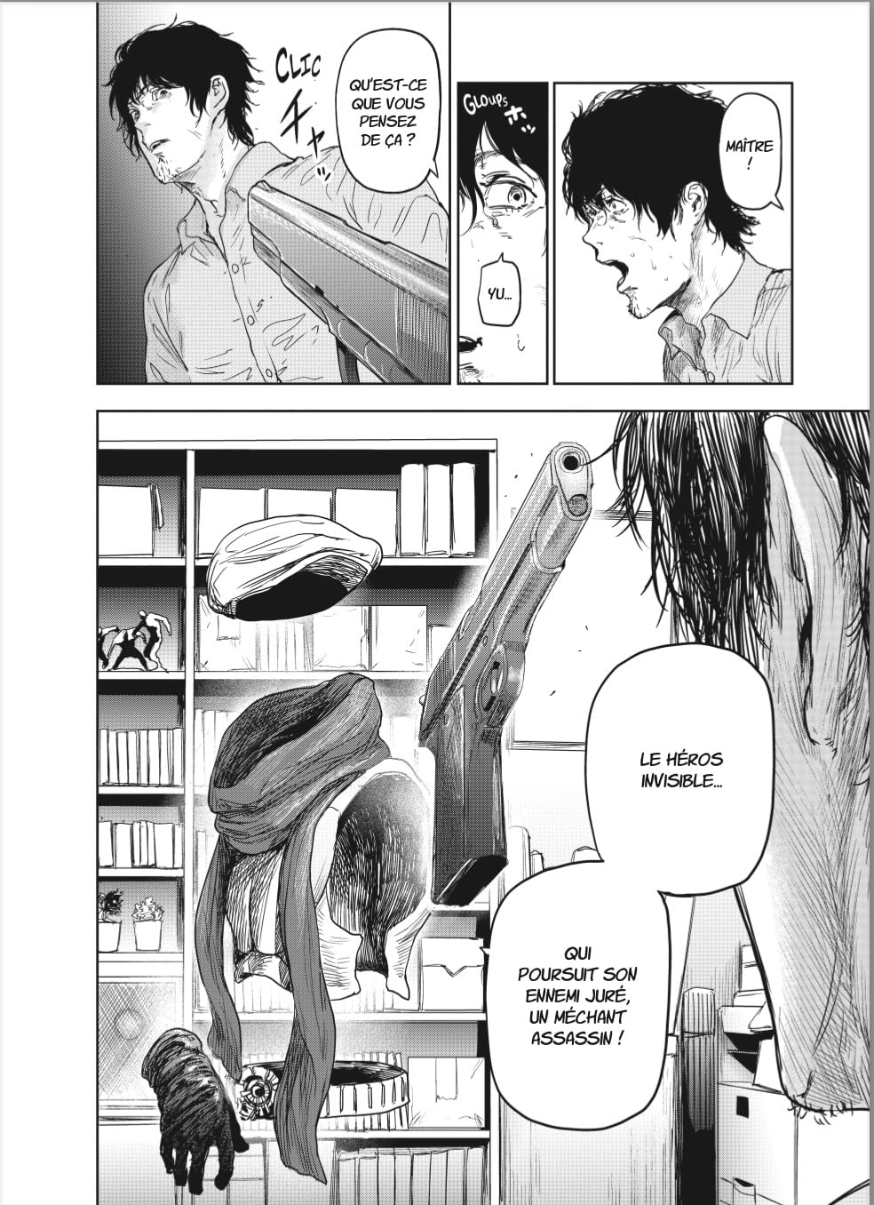 Mais rien ne se passe comme prévu... En plein rendez-vous professionnel avec son éditeur, et de nouveau confronté à un barrage de critiques, l’auteur craque et un pouvoir mystérieux se manifeste alors : il rend invisible son interlocuteur avant de le tuer ! Takeru dissimule son crime tant bien que mal. Lui qui a consacré sa vie à dessiner des défenseurs de la justice, serait-il passé de l’autre côté de la barrière ?