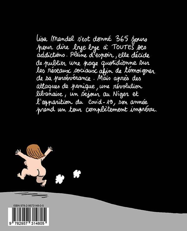 Lisa Mandel s’est donné 365 jours pour dire bye-bye à TOUTES ses addictions. Pleine d’espoir, elle décide de publier une page quotidienne sur les réseaux sociaux afin de témoigner de sa persévérance. Mais après des attaques de panique, une révolution libanaise, un séjour au Niger et l’apparition du Covid-19, son année prend un tour complètement imprévu.