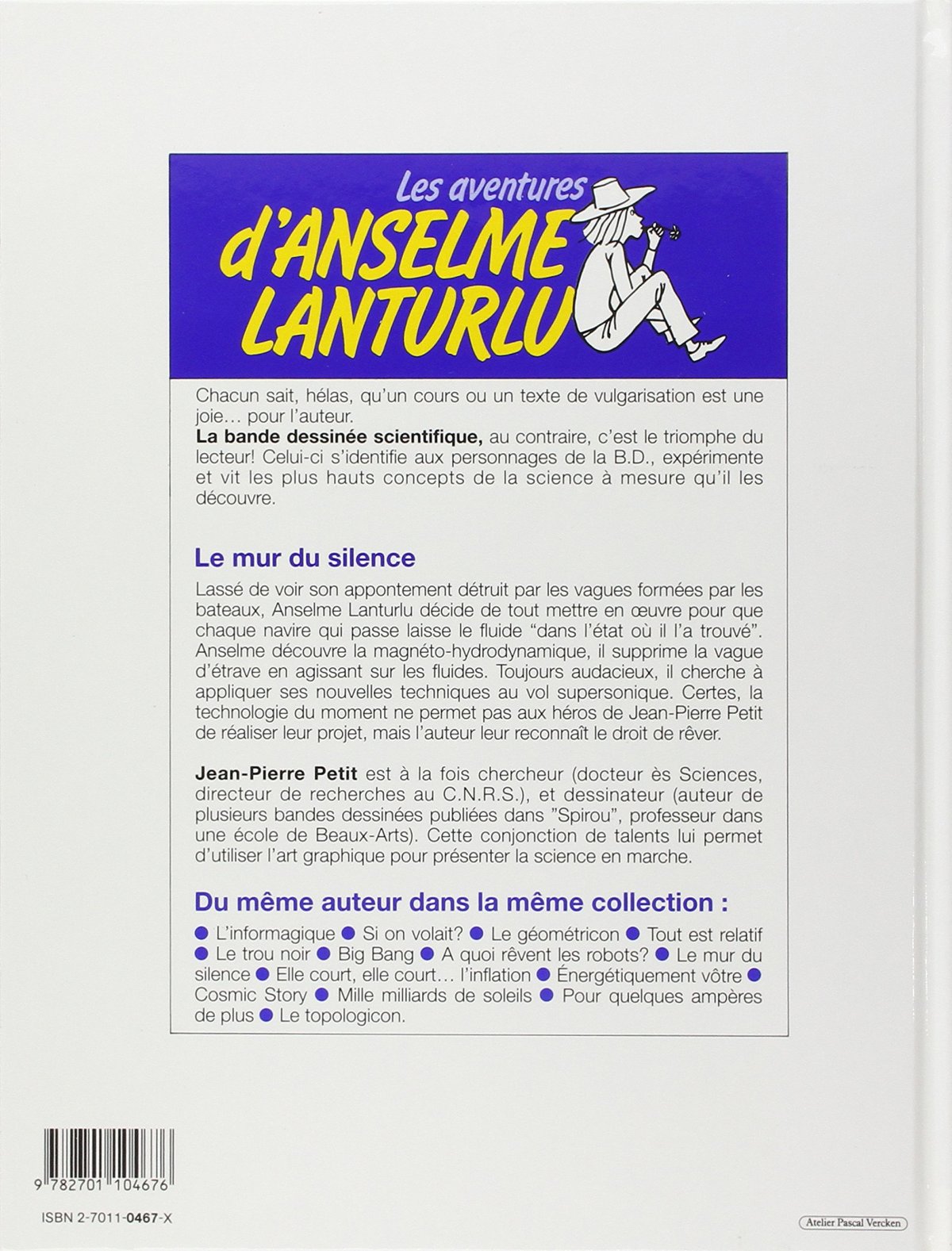 Mur du silence (Le) est le volume 8 de la série Anselme Lanturlu (Les aventures d’) par Jean-Pierre Petit, paru en 1985. Selon nos informations, il n'en existe qu'une seule édition, publiée par Belin.