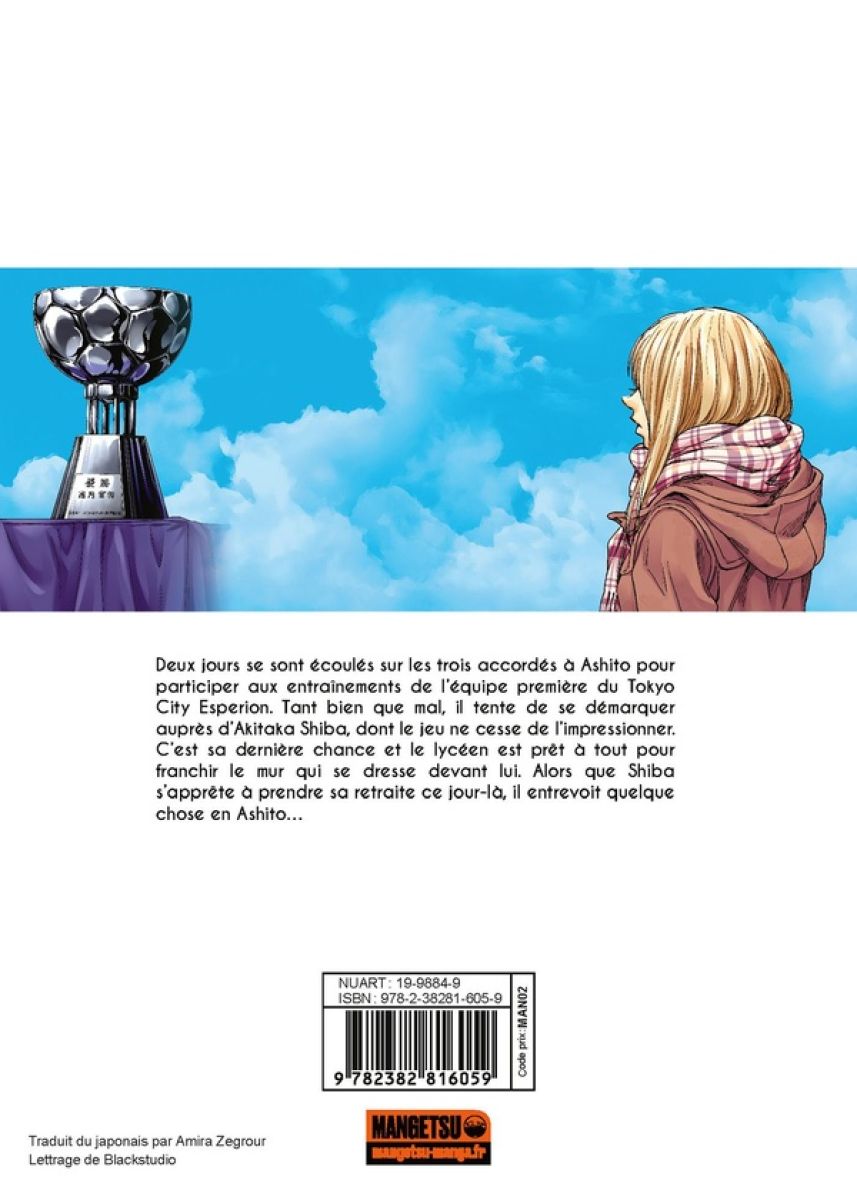 Deux jours se sont écoulés sur les trois accordés à Ashito pour participer aux entraînements de l’équipe première du Tokyo City Esperion. Tant bien que mal, il tente de se démarquer auprès d’Akitaka Shiba, dont le jeu ne cesse de l’impressionner. C’est sa dernière chance et le lycéen est prêt à tout pour franchir le mur qui se dresse devant lui. Alors que Shiba s’apprête à prendre sa retraite ce jour-là, il entrevoit quelque chose en Ashito...
