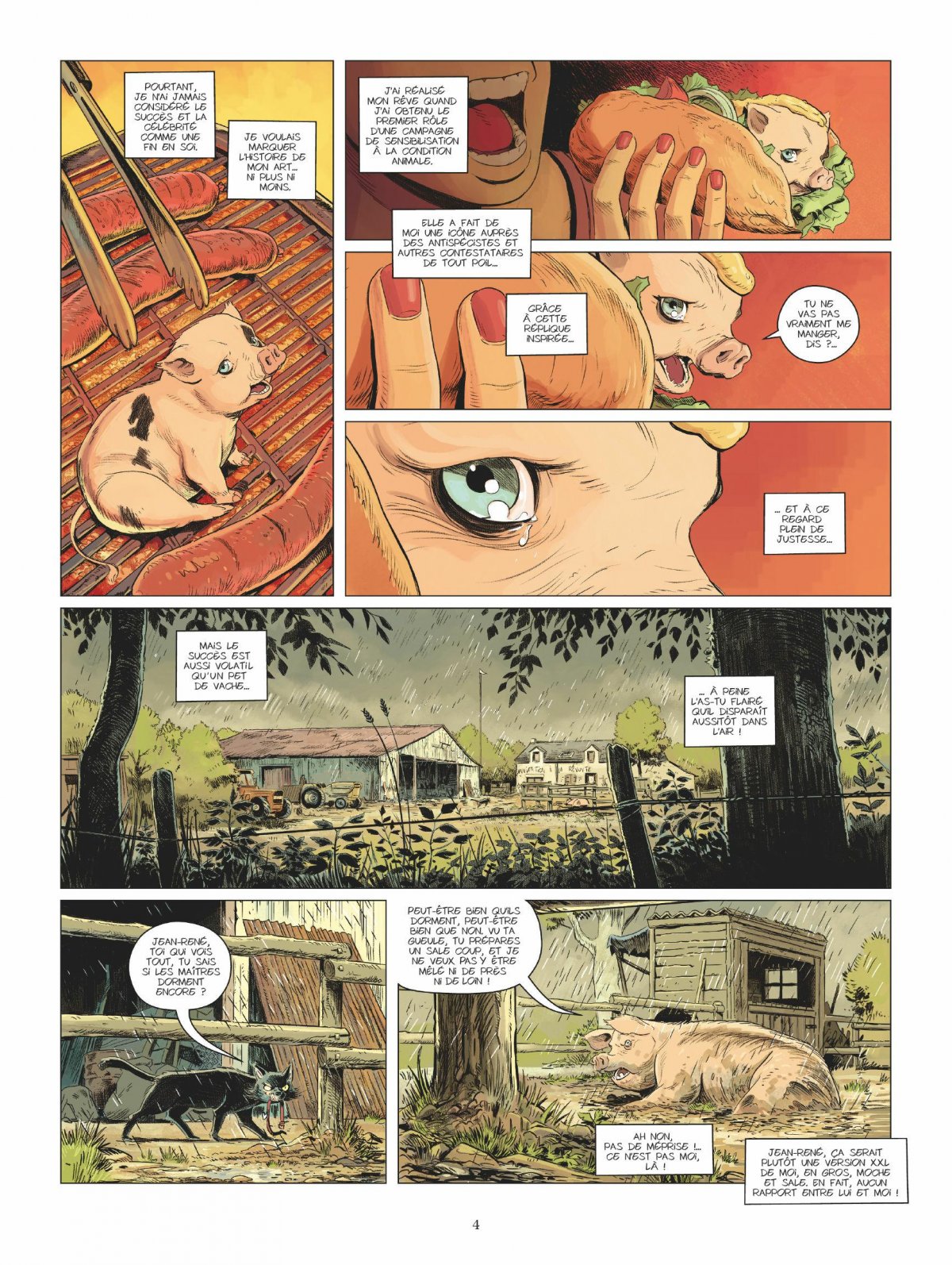 Poussé à la retraite après une fulgurante carrière de modèle, Néo – un cochon nain en pleine croissance – rejoint une Z. A. D. où il est accueilli par des amis des bêtes dans une ferme occupée. Quand ceux-ci se font violemment déloger par les forces de l’ordre, Néo s’enfuit en compagnie de quatre autres animaux de basse-cour, seuls rescapés du champ de bataille. Il y a Renata, la vache laitière, moulin à paroles et serial gaffeuse ; Bruce le bœuf des Highlands, qui traverse une violente crise d’adolescence ; Ferdinand, la poule qui se prend pour un coq ; et Soizic, la brebis bretonne à la toison épaisse et au caractère bien trempé. La petite troupe doit quitter cette zone de guerre ou ils seront capturés et envoyés à l’Abattoir. Maintenant, il leur faut trouver une nouvelle terre d’accueil...