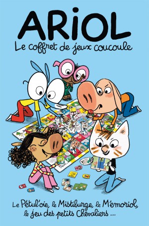 Cette jolie boîte de jeux contient un jeu de memory, un jeu de Mistigri, un grand plateau réversible avec d’un côté le « Pétul’Oie », et de l’autre, un jeu des petits chevaliers, un dé et six figurines en carton qui représentent les personnages de la BD Ariol et servent de pion. Retrouvez tout l’univers de la série préférée des 7-10 ans, à travers un concept inédit de jeux scénarisés par les auteurs !
