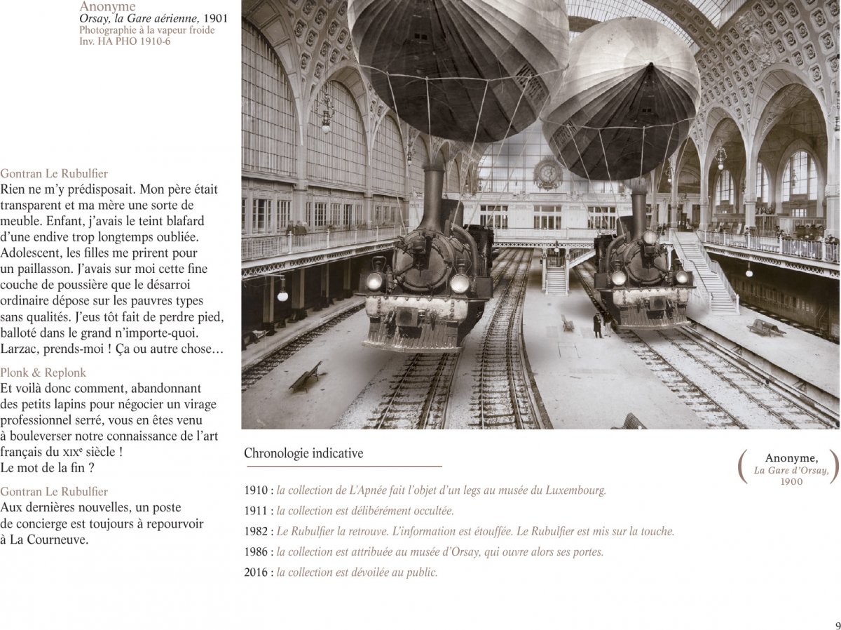 Quand le Musée d’Orsay ouvre ses portes au public le 9 décembre 1986, on n’a encore qu’une image floue de la masse de richesses héritées d’autres institutions. Parmi ces trésors figure la singulière collection Hippolyte de L’Apnée, legs enregistré en 1910 au Musée du Luxembourg et dont il ne fut jamais rien montré. On en perd même toute trace dès 1911. Cette disparition assourdissante ne devait rien au hasard. Une main puissante et anonyme a orchestré l’occultation du fonds sans, fort heureusement, aller jusqu’à le détruire purement et simplement. L’initiative venait assurément du sommet. La collection fut redécouverte en 1982 par Le Rubulfier. Était-ce le bout du tunnel pour ces trésors criminellement effacés de la mémoire de l’art ? Non. Incroyablement, l’extraordinaire découverte fut étouffée ! Dans un contexte politico-culturel plus serein, la collection de L’Apnée aurait dû, après un siècle d’absurde purgatoire, provoquer un véritable séisme. Les toiles en particulier, qui suivent un fil rouge des plus surprenants : signées par des artistes abusivement taxés de mineurs pour avoir malencontreusement passé leur vie à l’ombre de titans, elles n’ont eu pour seul tort que d’avoir marqué un pas de côté. Un tout petit pas qui leur valut l’exclusion du tableau d’honneur. C’est la singularité de cette collection. La majorité de ces artistes négligés étaient des modestes cousins, des compagnons de volée ou de simples admirateurs cherchant à reproduire la manière de leur prestigieux modèle. C’est là une entreprise à la fois grandiose et pathétique dont la vacuité apparente ne diminue toutefois en rien l’intérêt. Objets de dérision aux yeux de la critique institutionnelle de l’époque, ces figures malmenées ont fini par disparaître pour la plupart des écrans radar. C’est au prix de longues recherches menées avec une infinie patience que Plonk & Replonk sont parvenus à faire revivre ces victimes de la pensée unique. Qu’ils en soient ici chaleureusement remerciés. Le moment est venu de nous pencher enfin avec une bienveillante curiosité sur ce cadeau surgi du néant d’un injuste oubli pour le juger avec la nouvelle objectivité qu’il mérite.