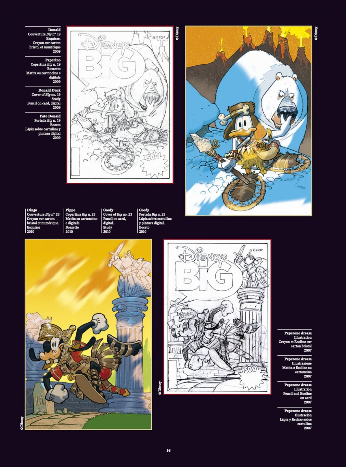Ouvrez cet album et partez pour un voyage où l’inattendu vous guette à tout instant et où des styles différents vous surprendront à chaque changement de page. Crayonnés et encres, couleur et noir et blanc : découvrez la genèse du monde fantasy de Elias le maudit, traversez l’Ouest en compagnie du chamane Magico Vento. Saisissez des aperçus inédits de Donaldville, dans la version traditionnelle ou dans la version hypertechnologique des bandes culte Fantomiald et PowerducK. Jetez un oeil derrière les coulisses et trouvez des études préparatoires et des travaux moins connus. Le meilleur de l art de Corrado Mastantuono enfin réuni en volume.